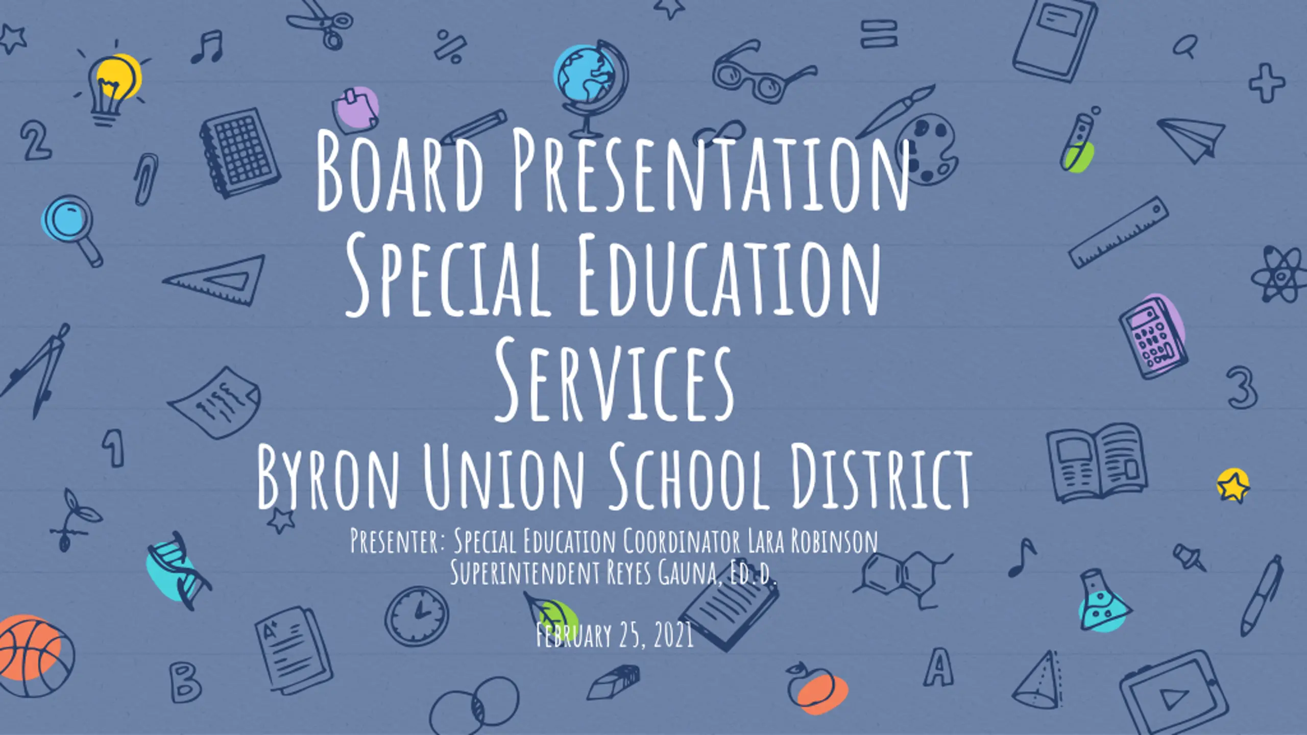 Board Presentation Special Education Services Byron Union School District Presenter: Special Education Coordinator Lara Robinson Superintendent Reyes Gauna, Ed.d. February 25, 2021