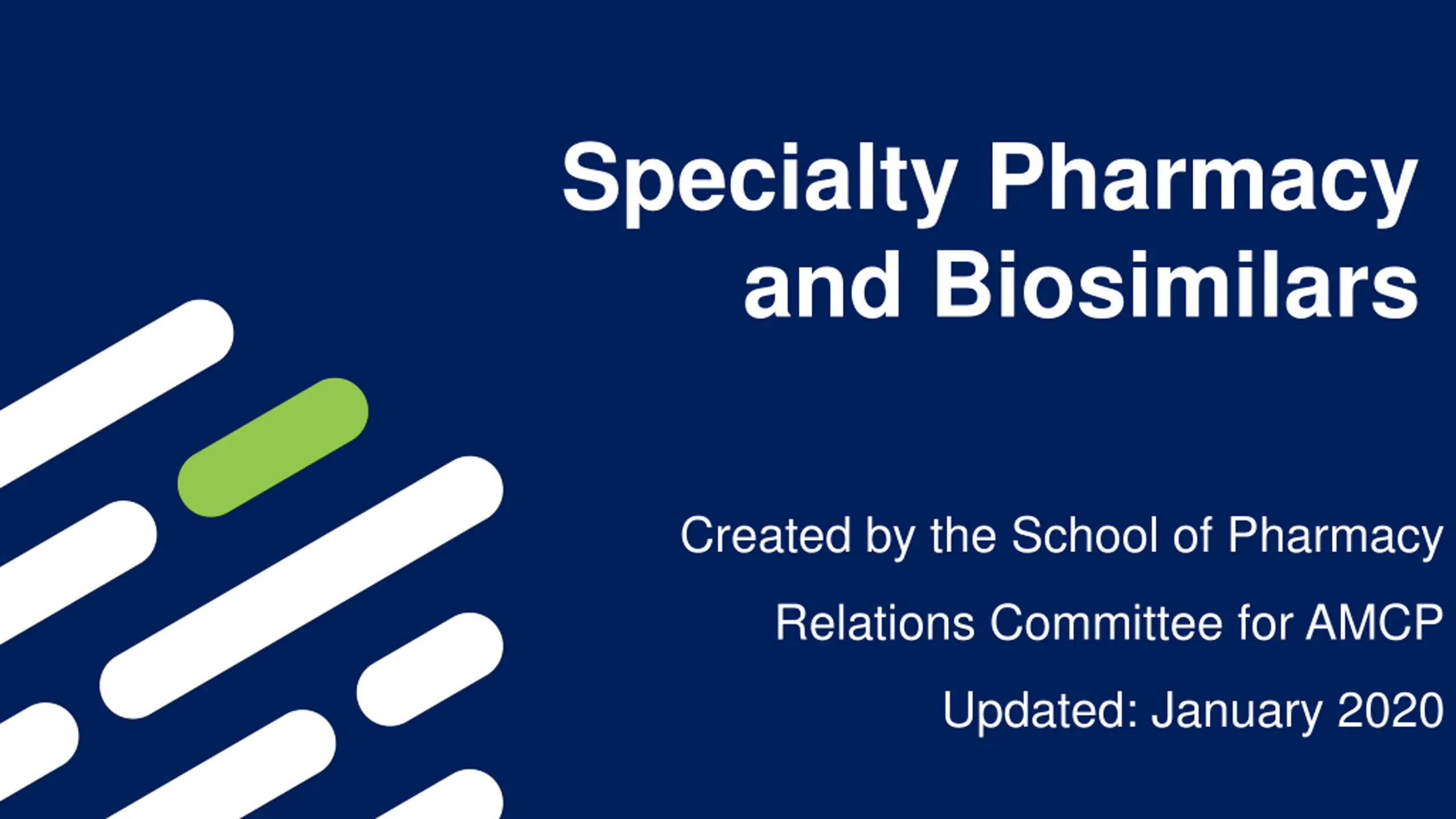Specialty Pharmacy and Biosimilars Created by the School of Pharmacy Relations Committee for AMCP Updated: January 2020