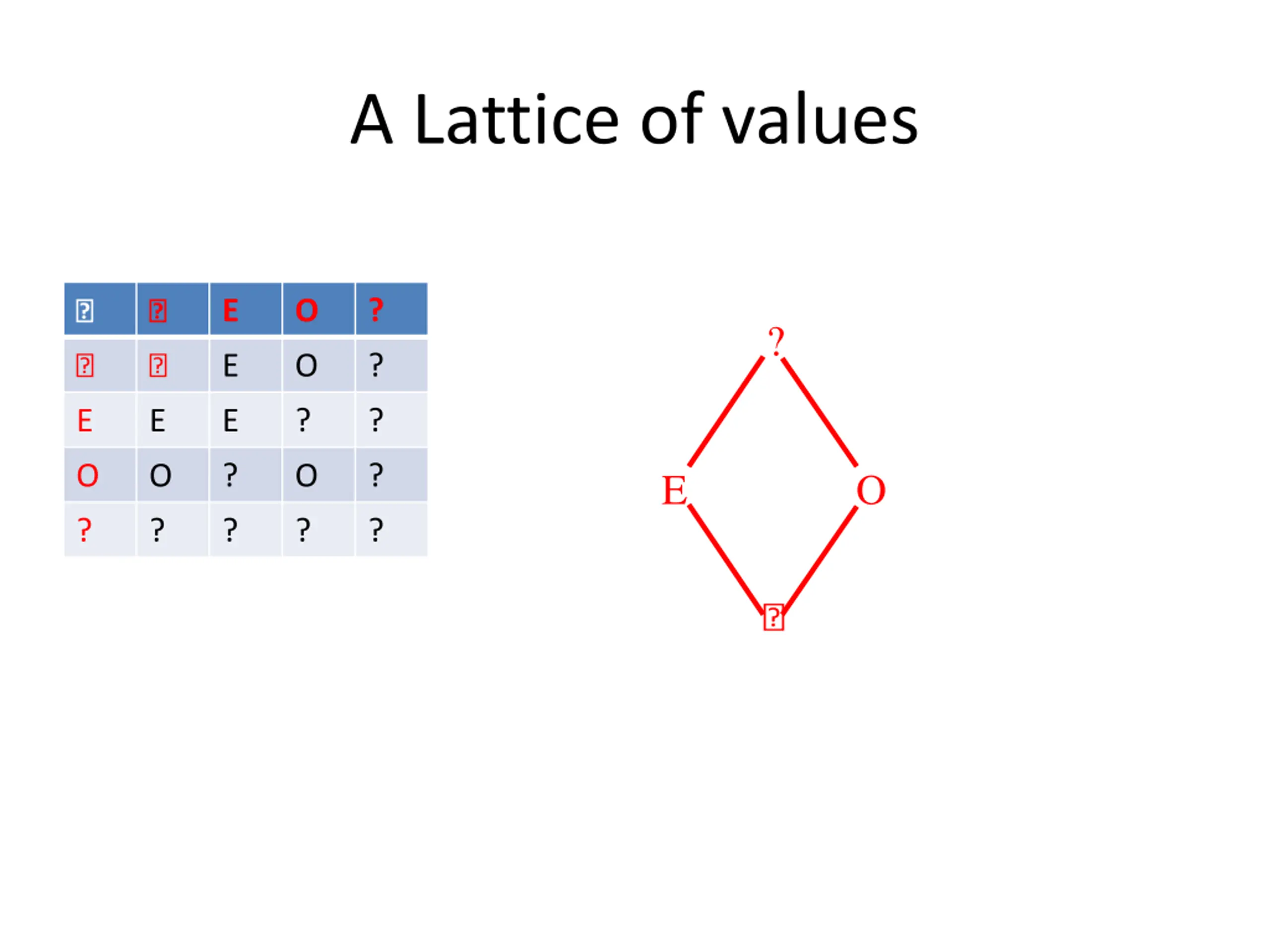 A Lattice of values E O ? ? E O ? E E E ? ? O O ? O ? E O ? ? ? ? ?
