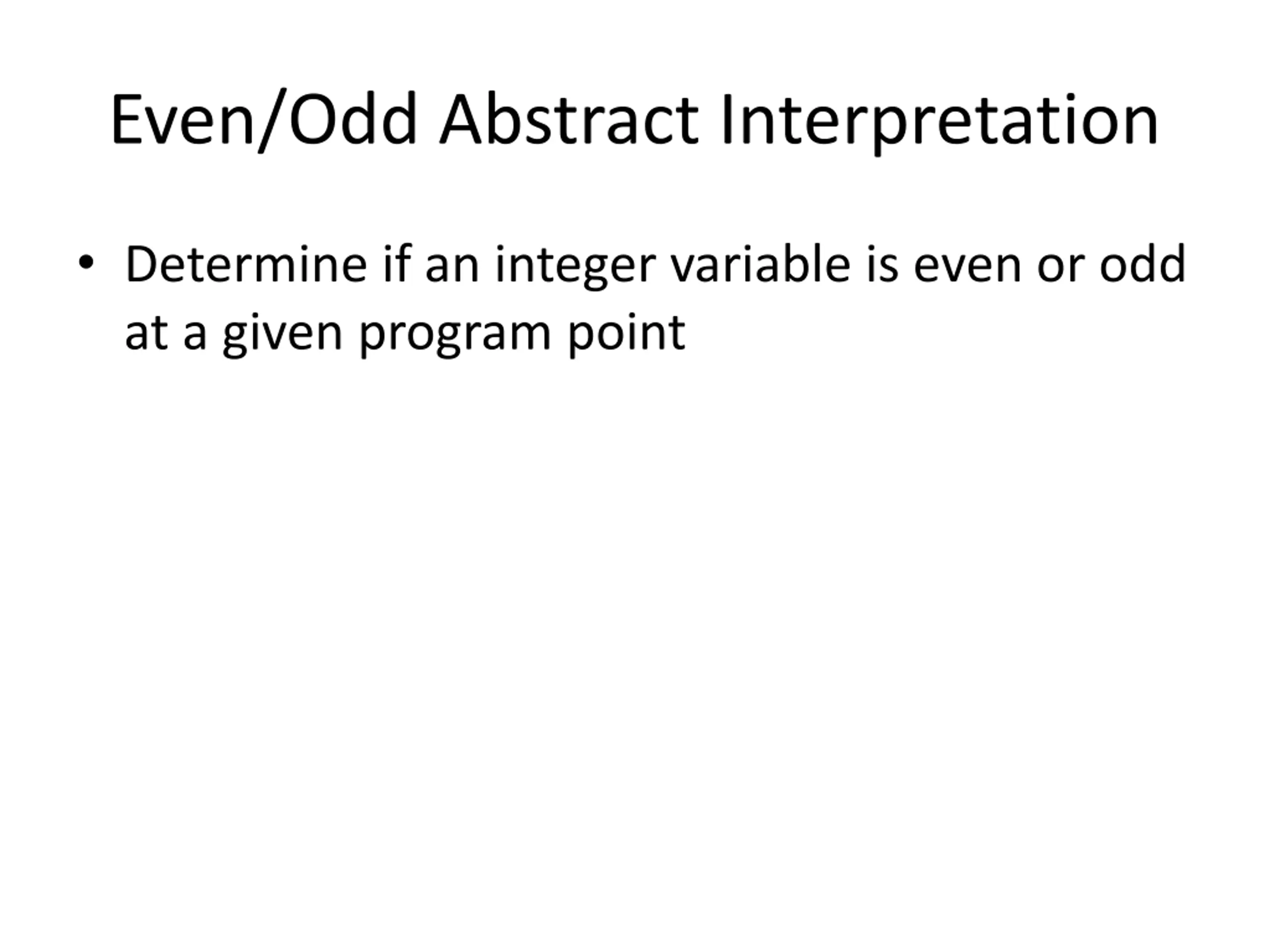 Even/Odd Abstract Interpretation Determine if an integer variable is even or odd at a given program point