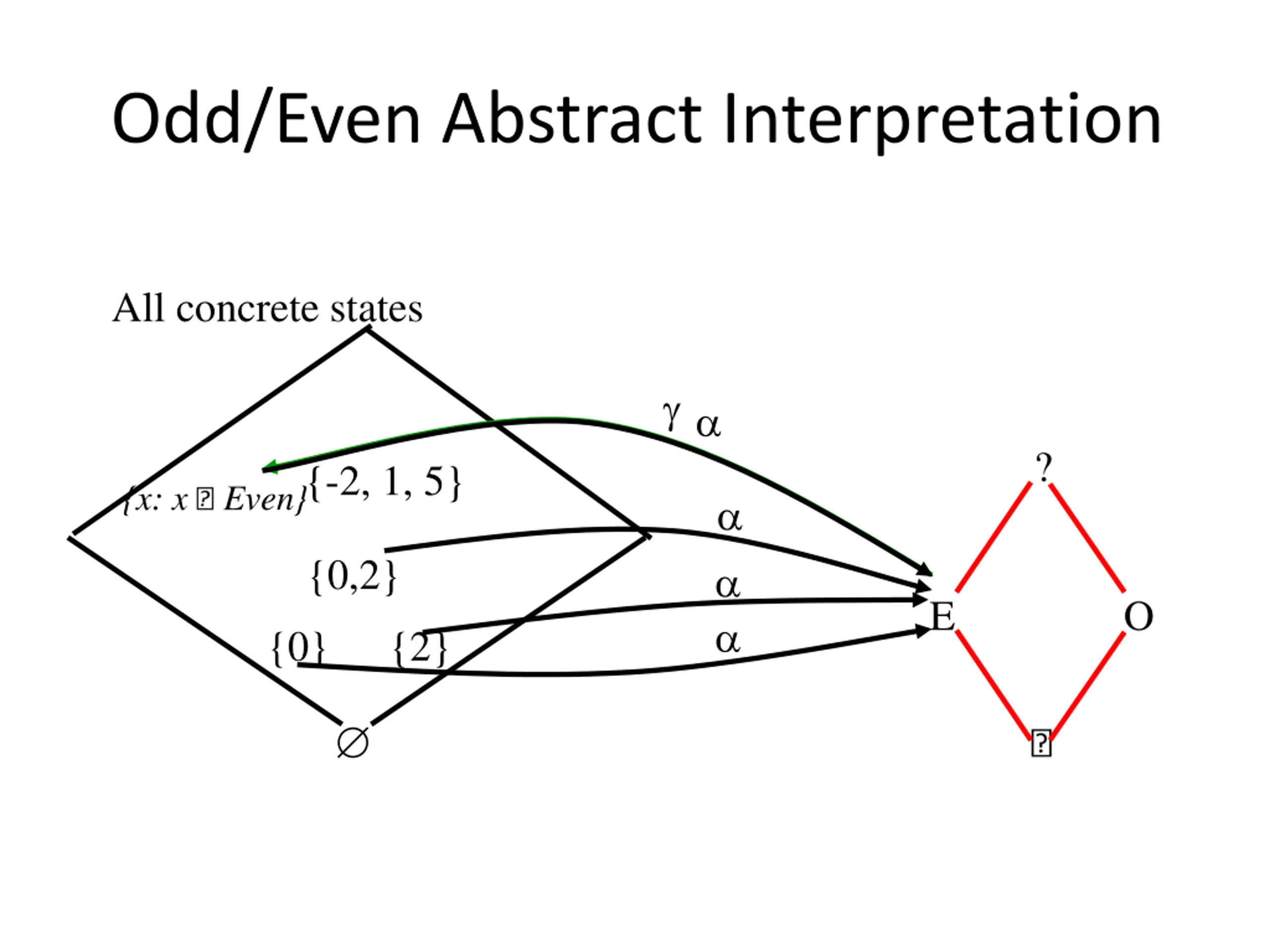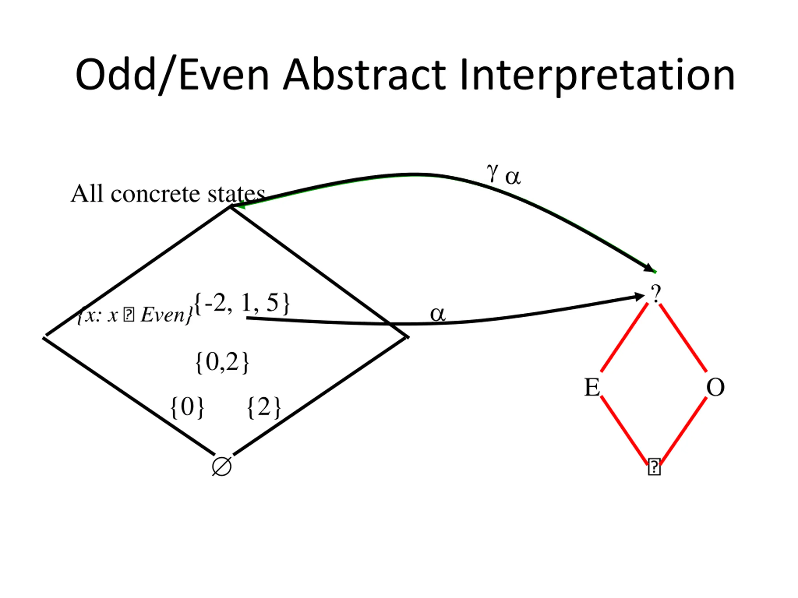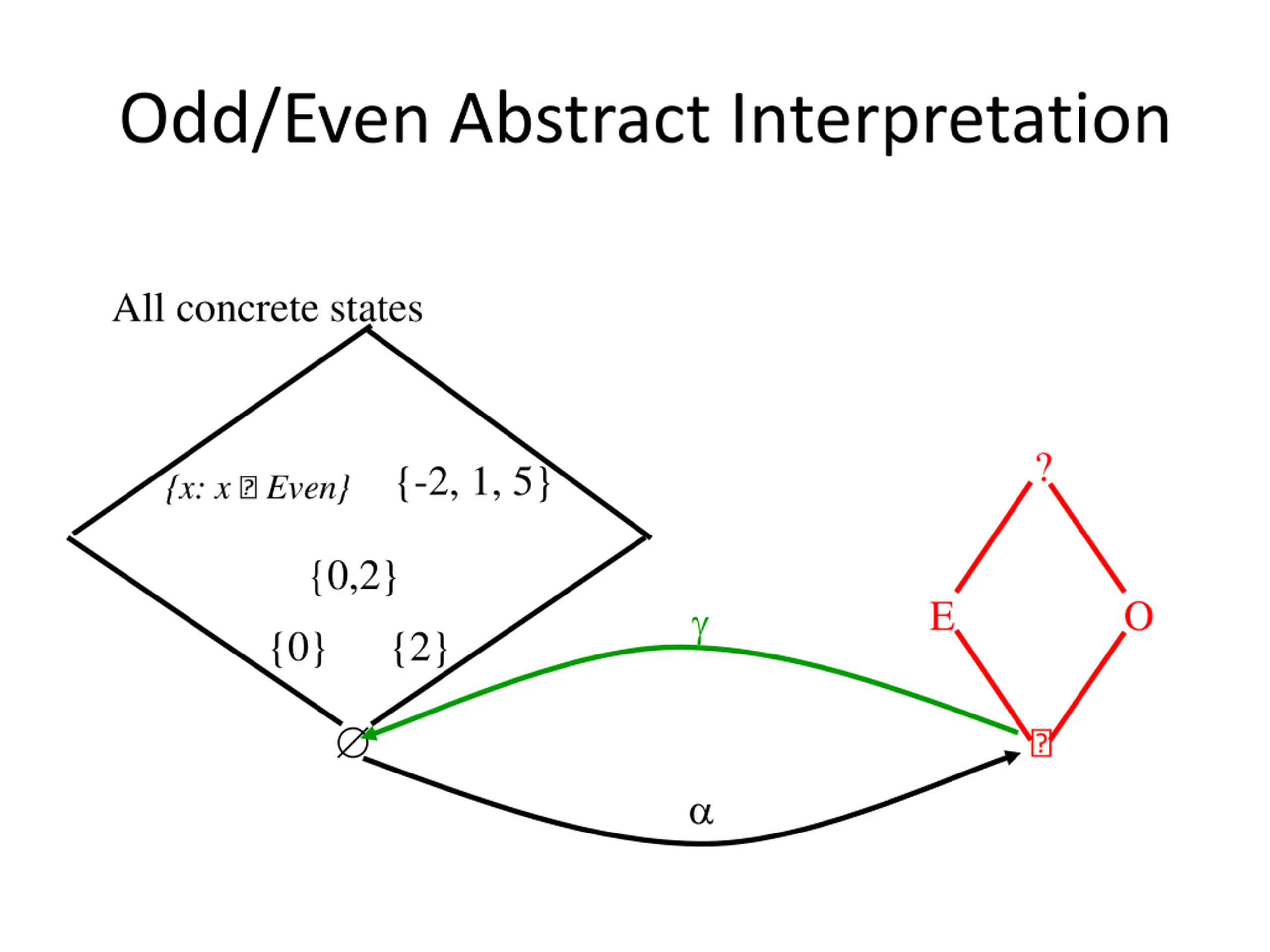 Odd/Even Abstract Interpretation All concrete states ? {-2, 1, 5} {x: x Even} {0,2} E O {0} {2}