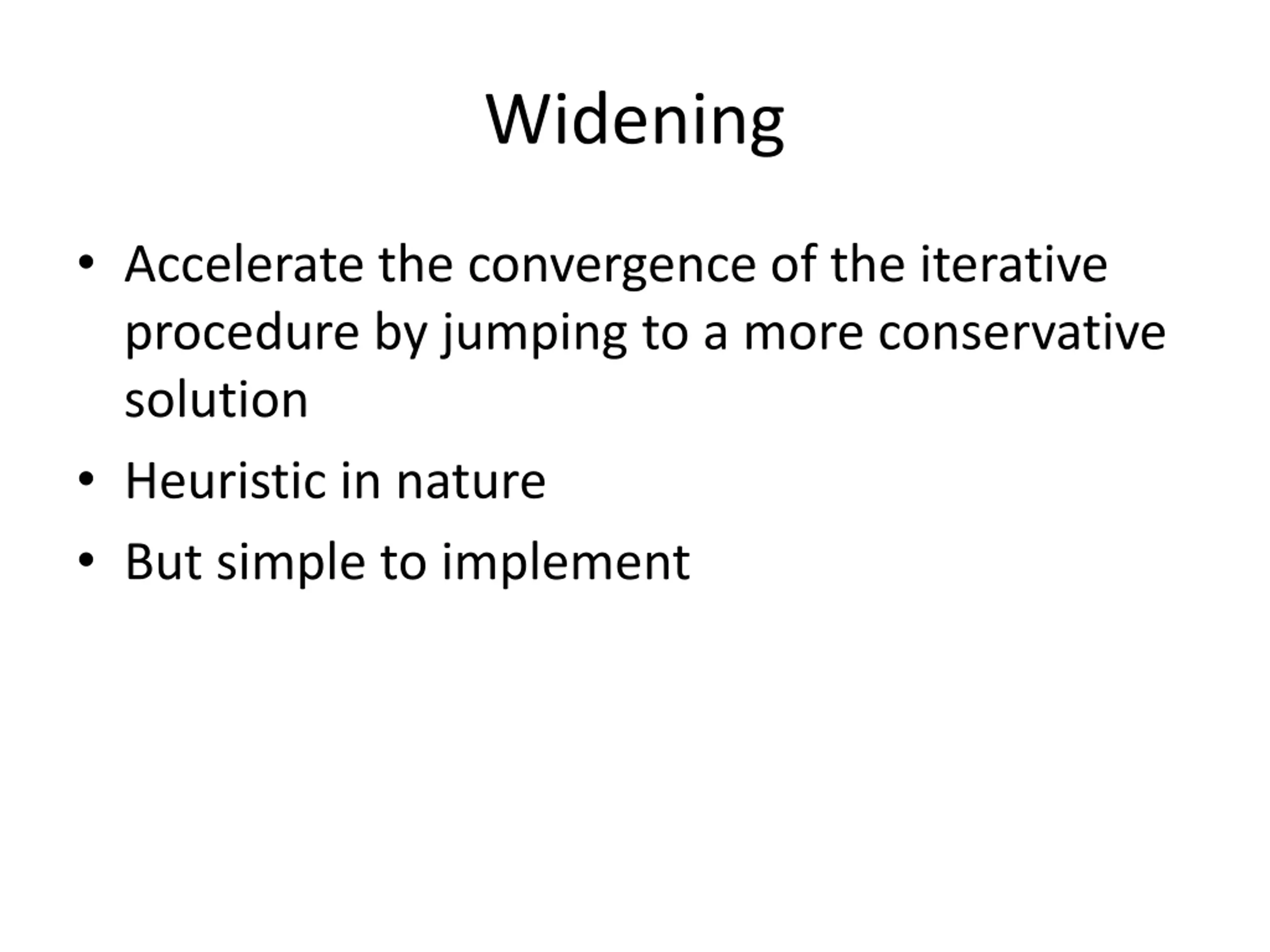 Widening Accelerate the convergence of the iterative procedure by jumping to a more conservative solution Heuristic in nature But simple to implement