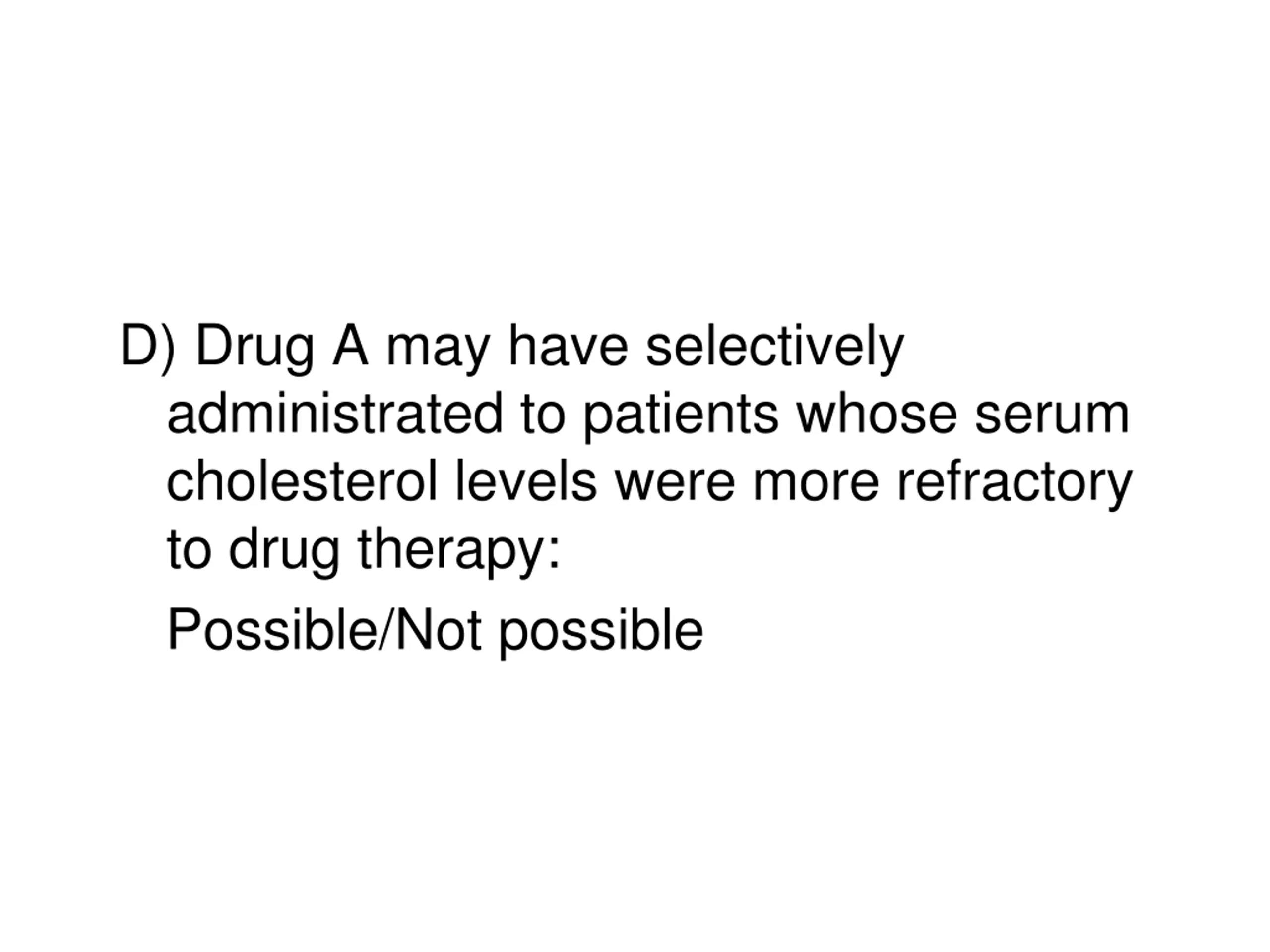 D) Drug A may have selectively administrated to patients whose serum cholesterol levels were more refractory to drug therapy: Possible/Not possible