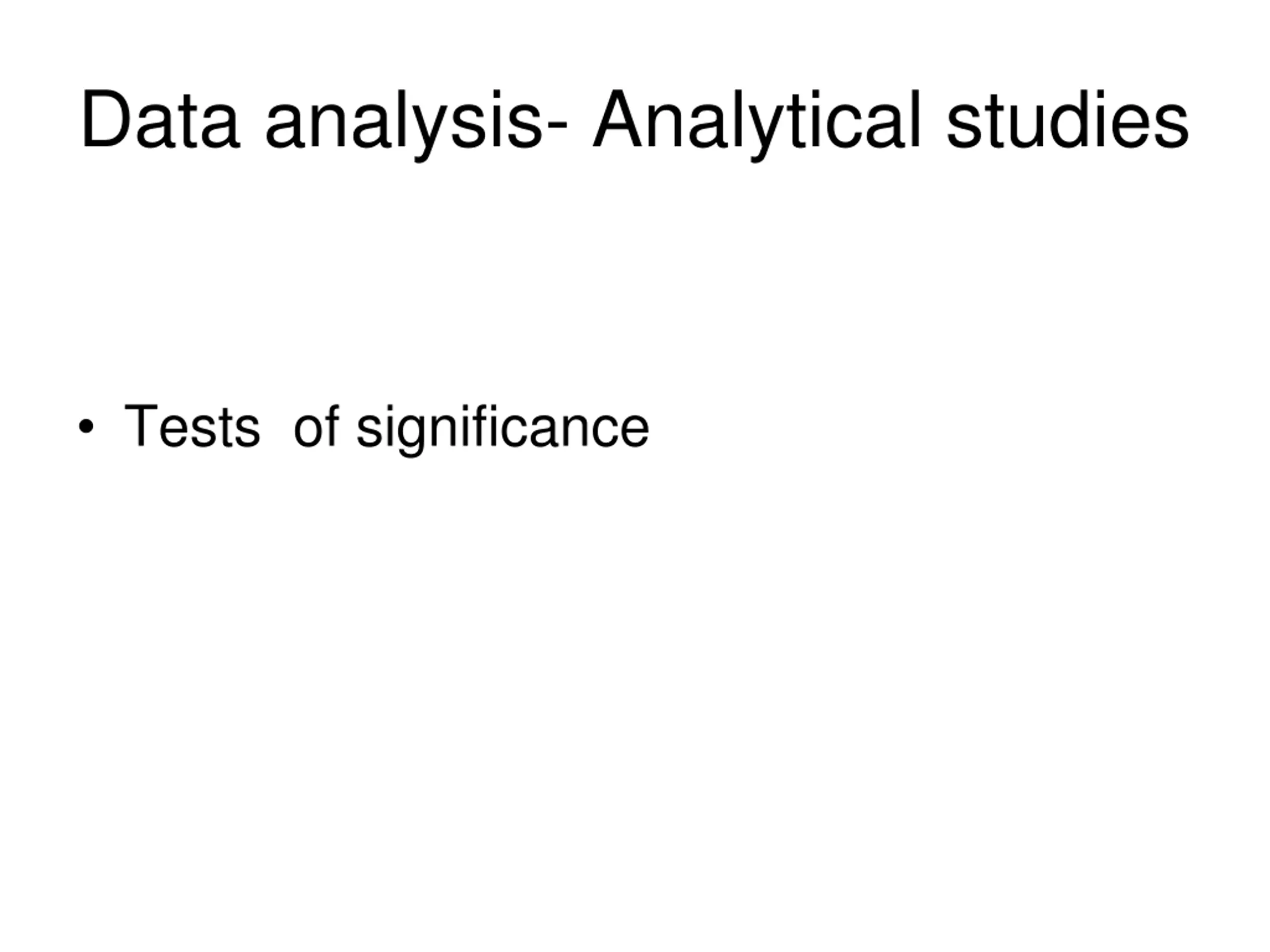 Data analysis- Analytical studies Tests of significance