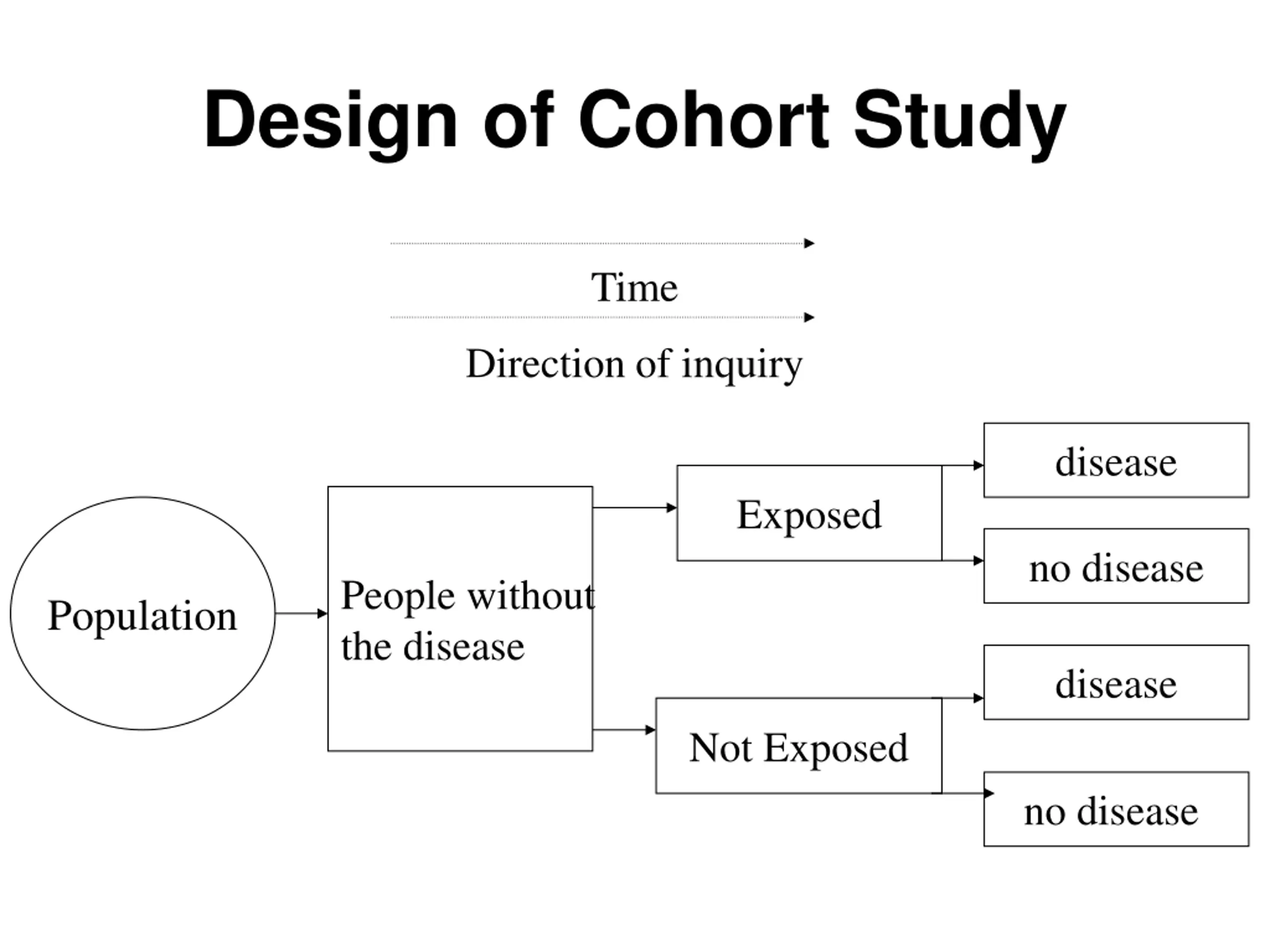 Design of Cohort Study Time Direction of inquiry disease Exposed no disease People without the disease Population disease Not Exposed no disease