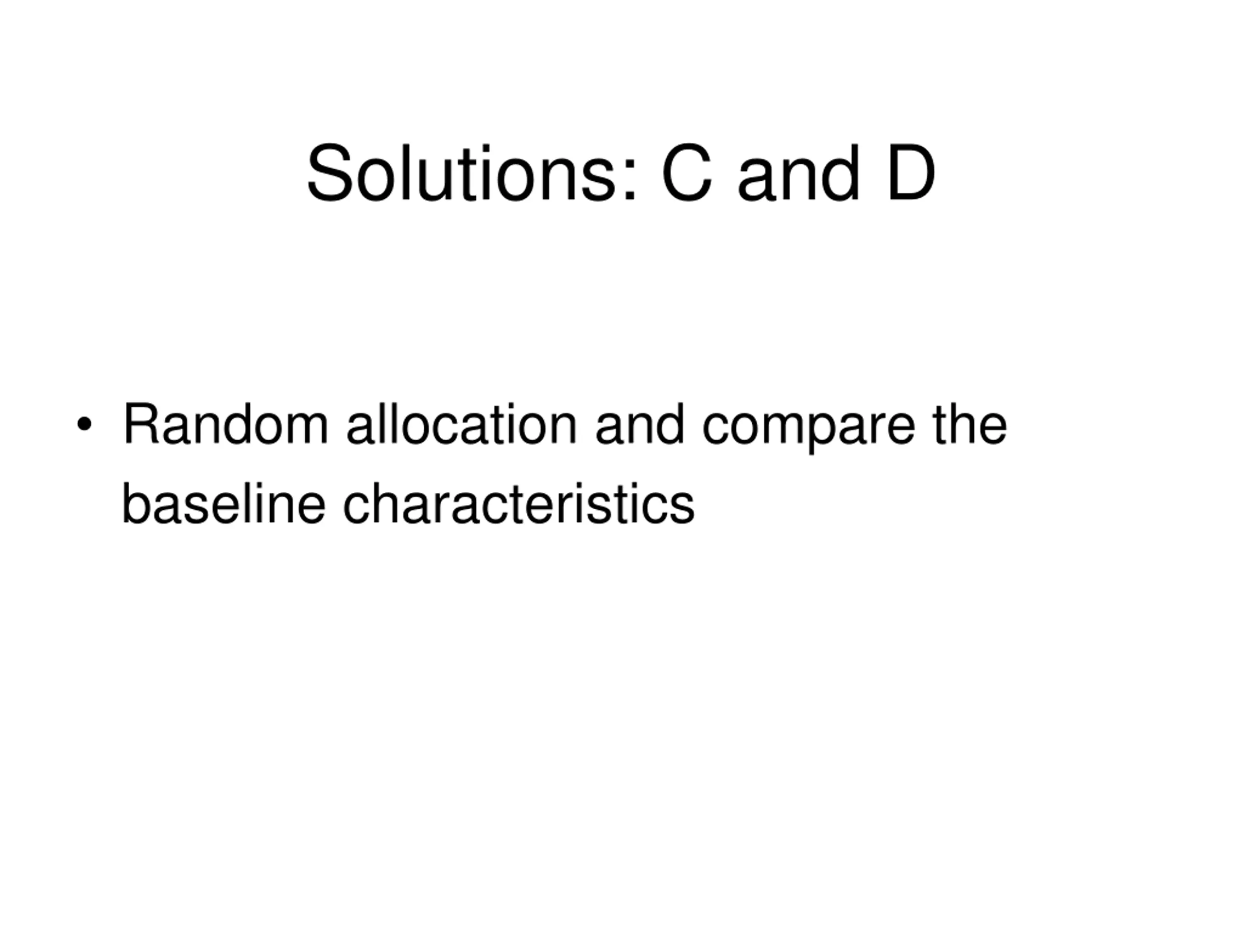 Solutions: C and D Random allocation and compare the baseline characteristics