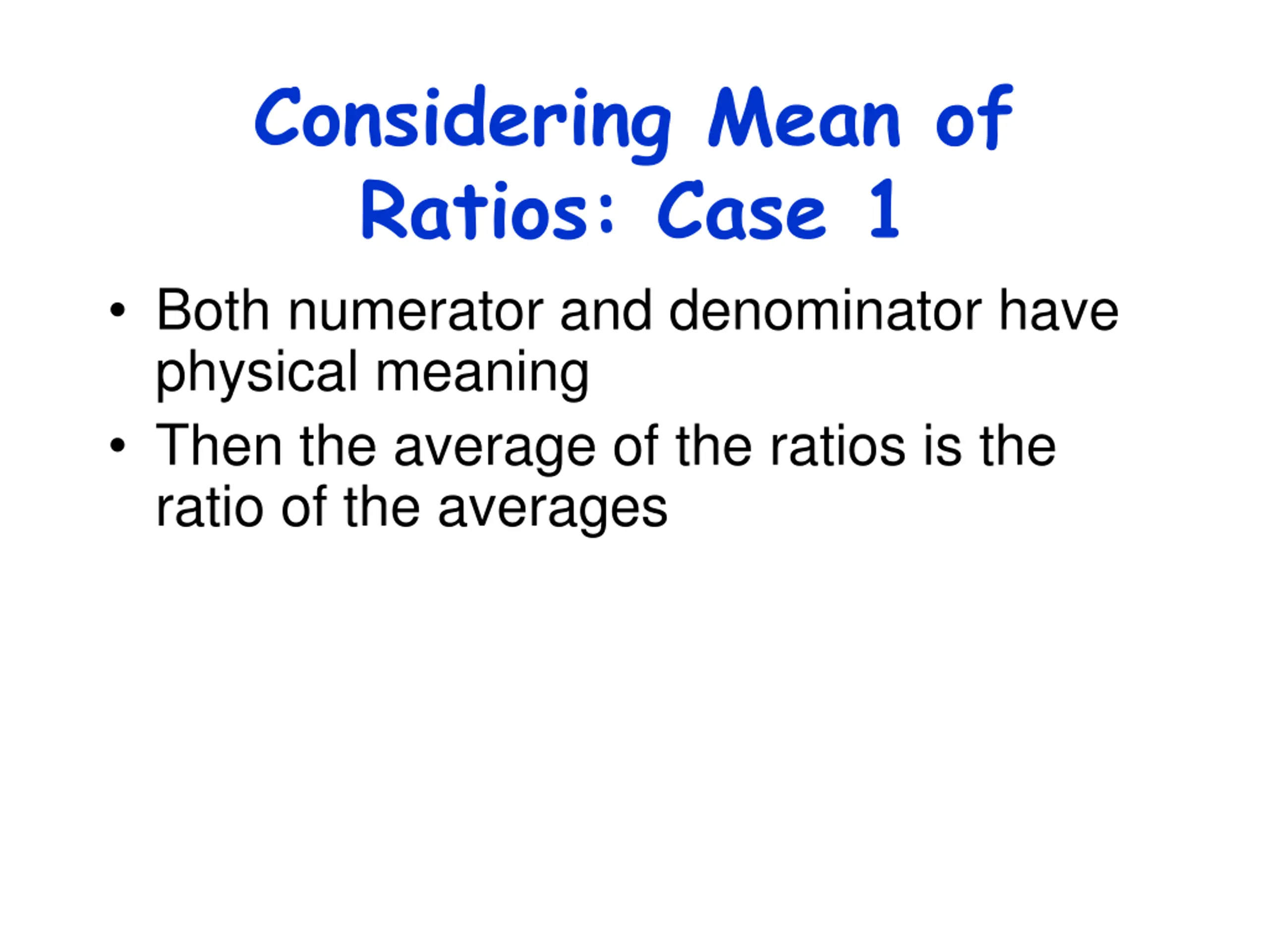 Considering Mean of Ratios: Case 1 Both numerator and denominator have physical meaning Then the average of the ratios is the ratio of the averages