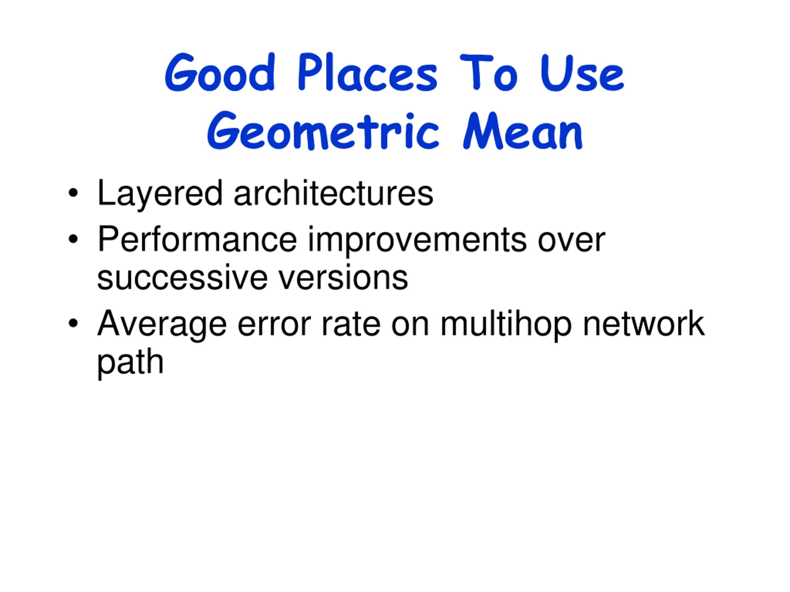 Good Places To Use Geometric Mean Layered architectures Performance improvements over successive versions Average error rate on multihop network path