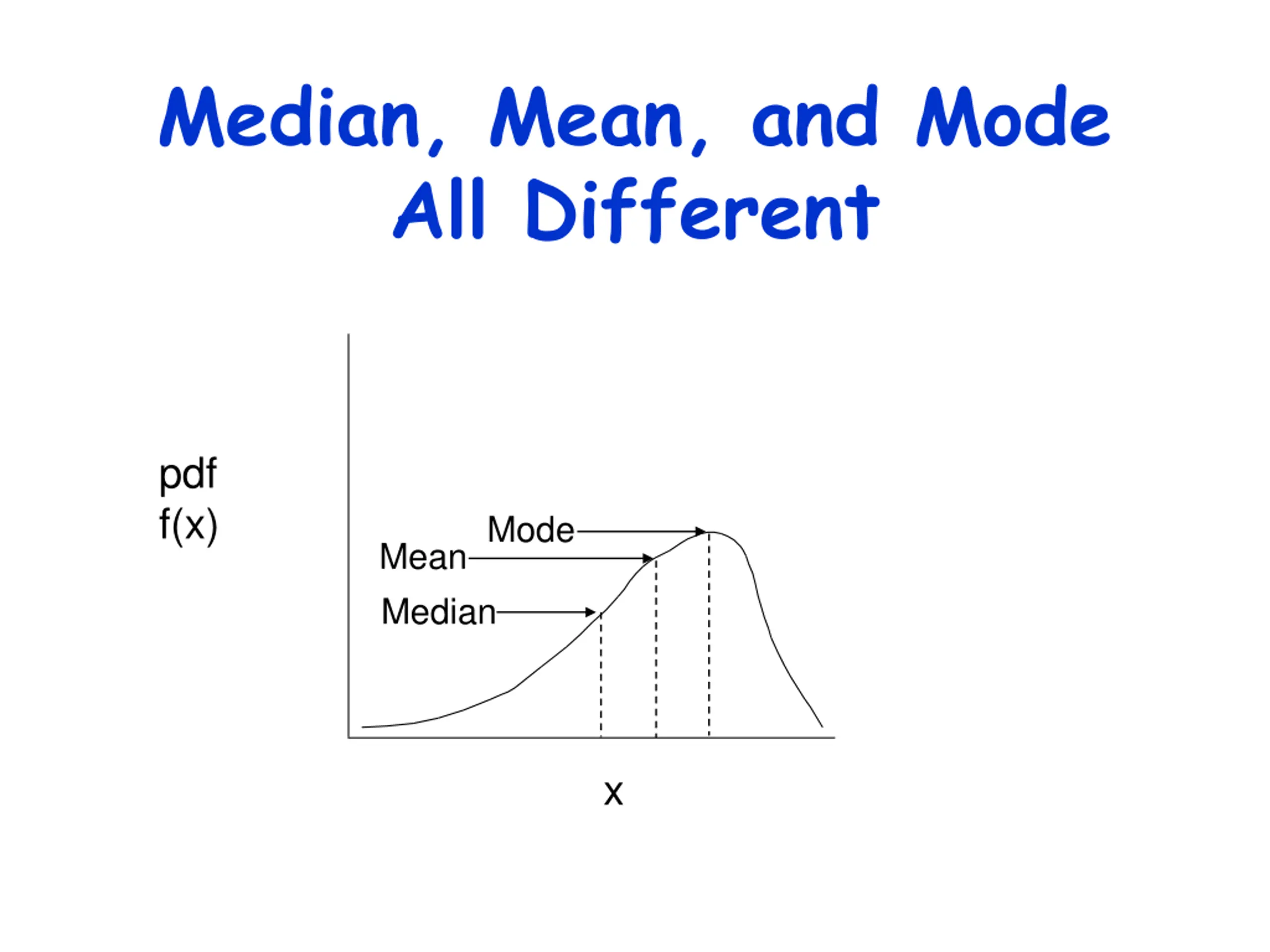 Median, Mean, and Mode All Different pdf f(x) Mode Mean Median x