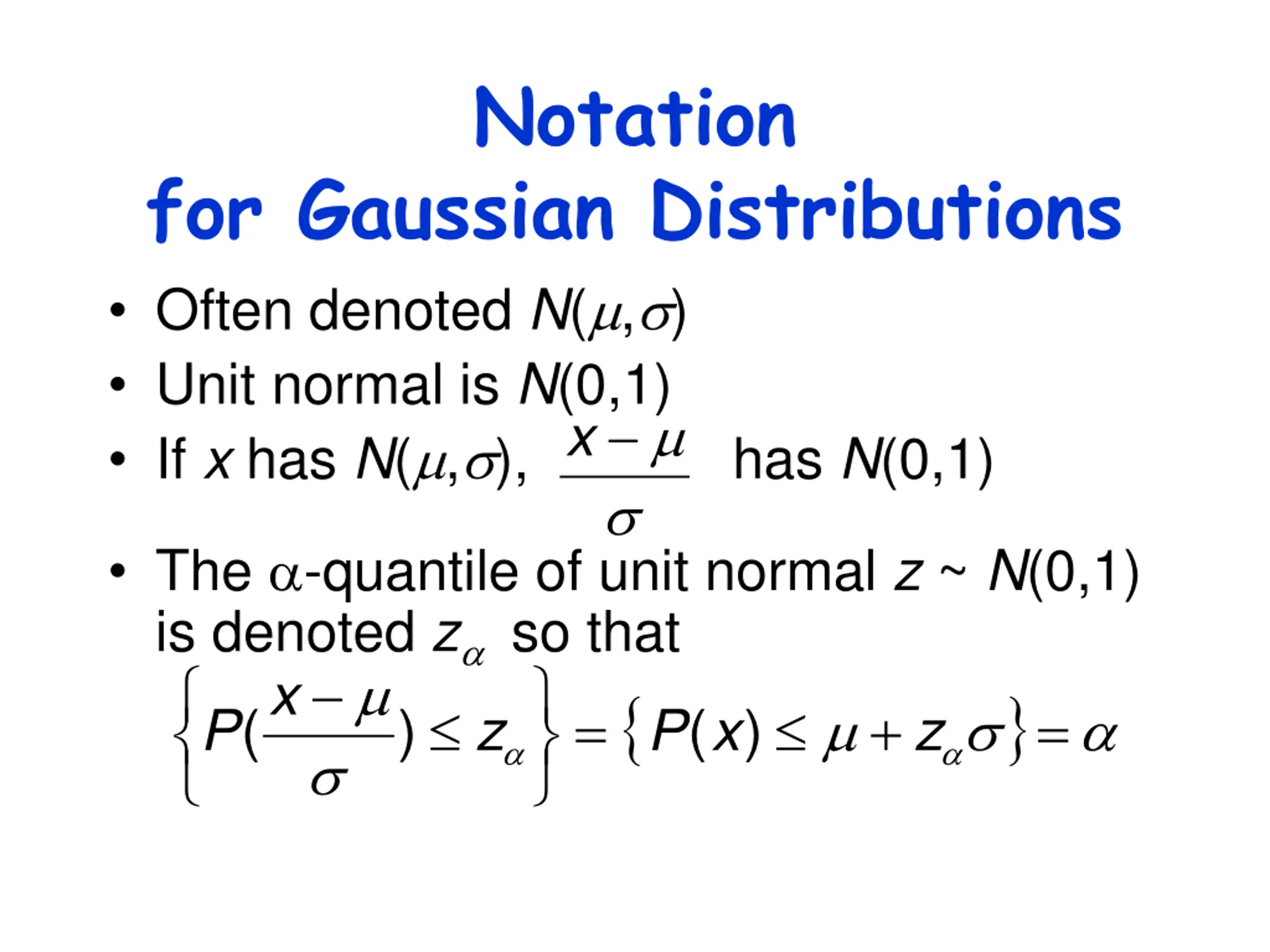 Notation for Gaussian Distributions Often denoted N( , ) Unit normal is N(0,1) If x has N( , ), has N(0,1) x The -quantile of unit normal z ~ N(0,1) is denoted z so that x z = + = P ( ) z P ( x )