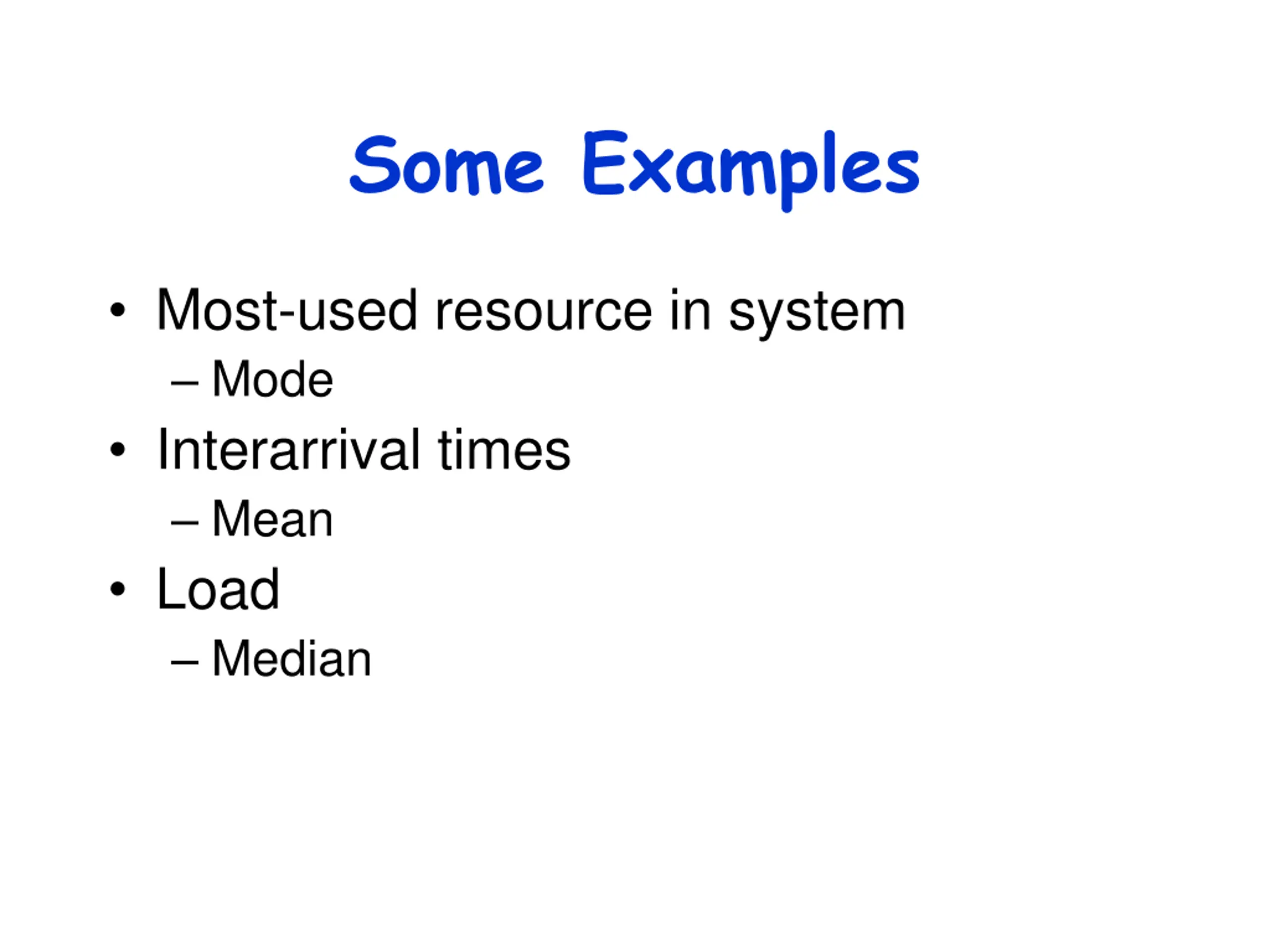Some Examples Most-used resource in system Mode Interarrival times Mean Load Median