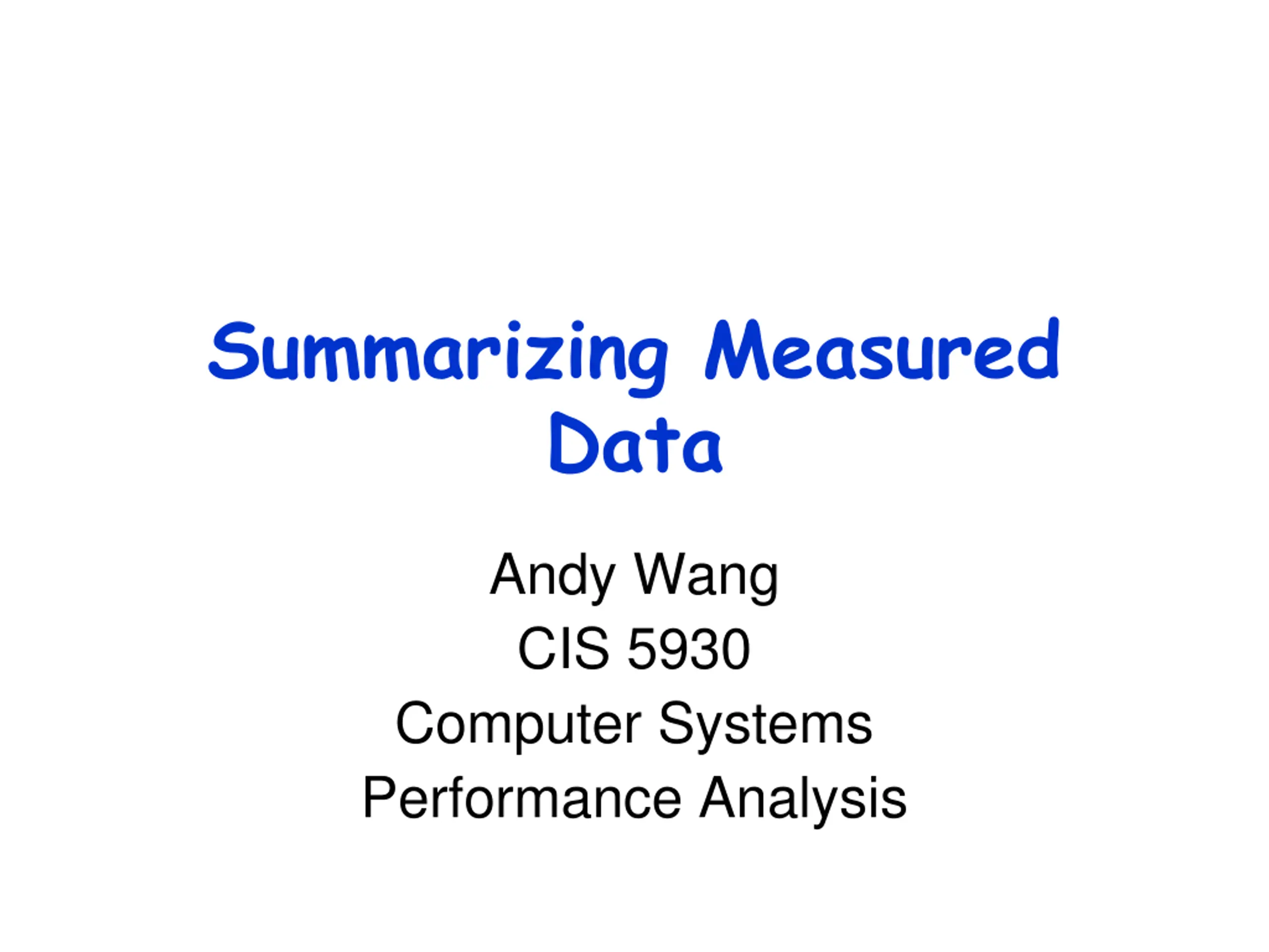 Summarizing Measured Data Andy Wang CIS 5930 Computer Systems Performance Analysis