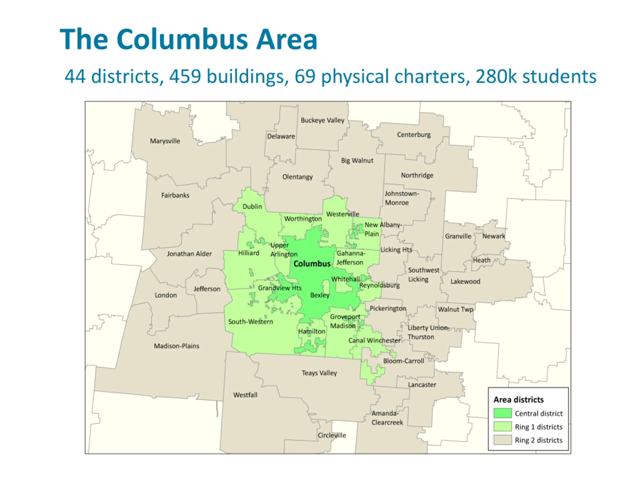 The Columbus Area 44 districts, 459 buildings, 69 physical charters, 280k students