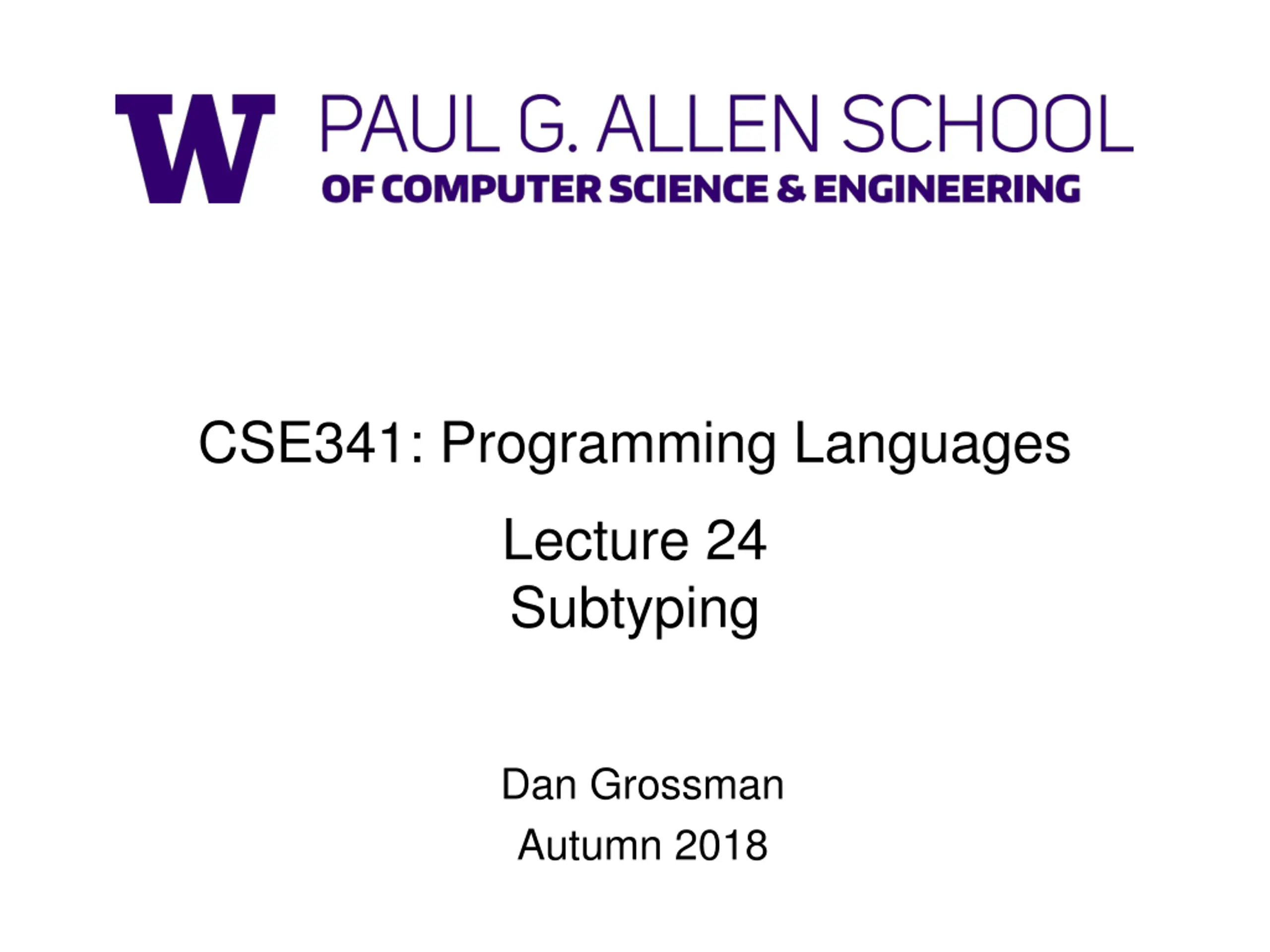 CSE341: Programming Languages Lecture 24 Subtyping Dan Grossman Autumn 2018