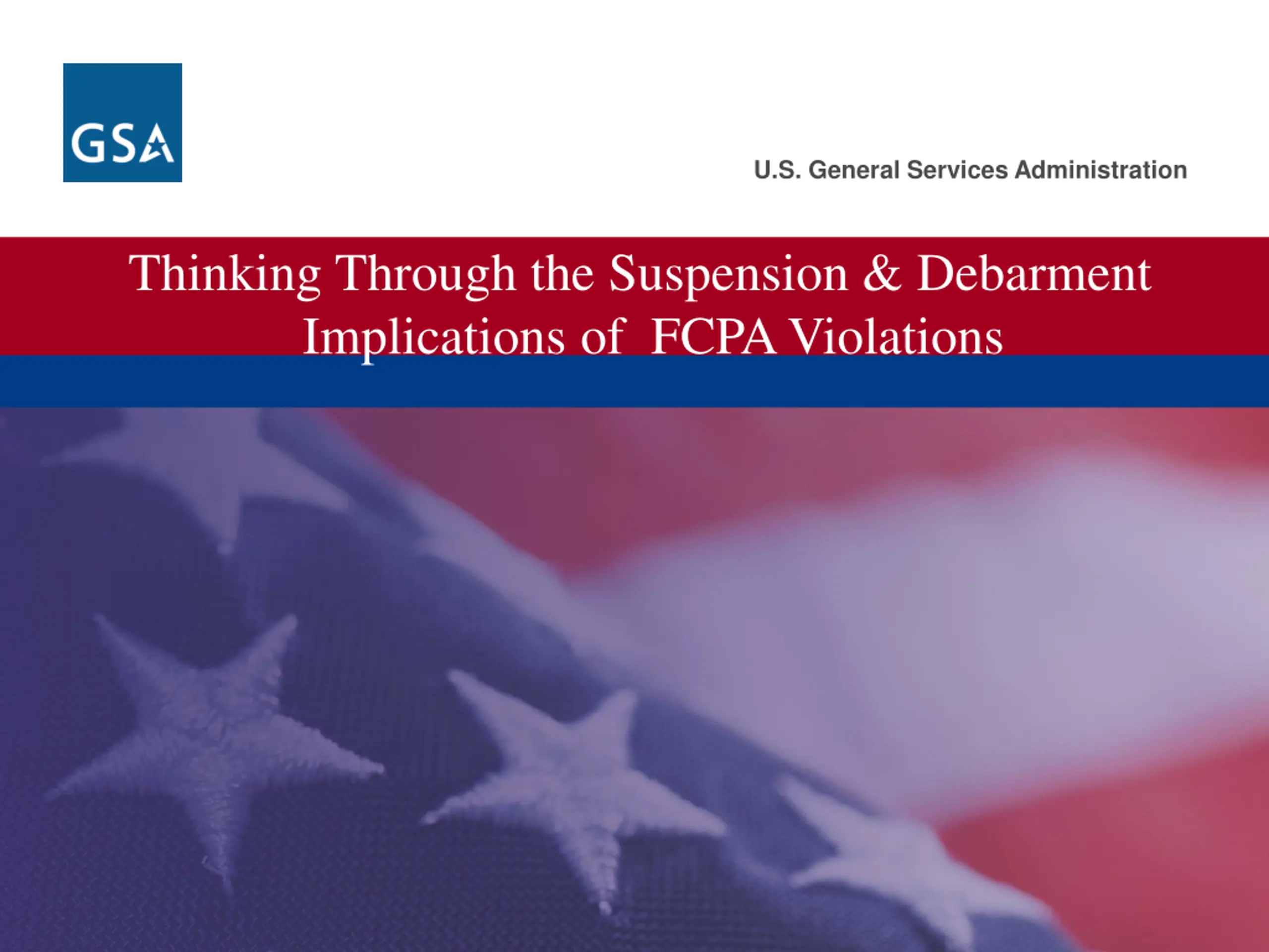 U.S. General Services Administration Thinking Through the Suspension & Debarment Implications of FCPA Violations