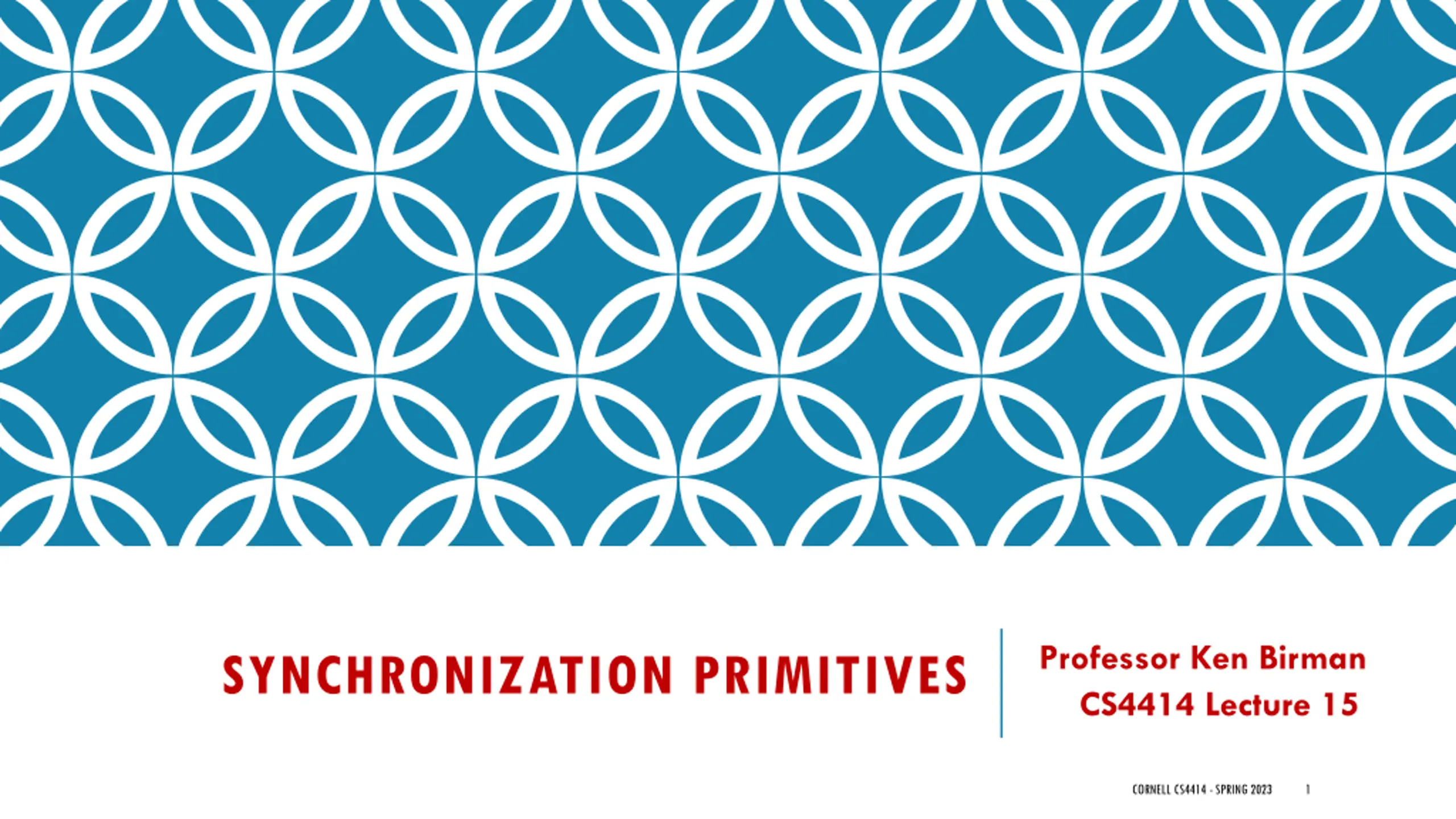 Professor Ken Birman CS4414 Lecture 15 SYNCHRONIZATION PRIMITIVES CORNELL CS4414 - SPRING 2023 1