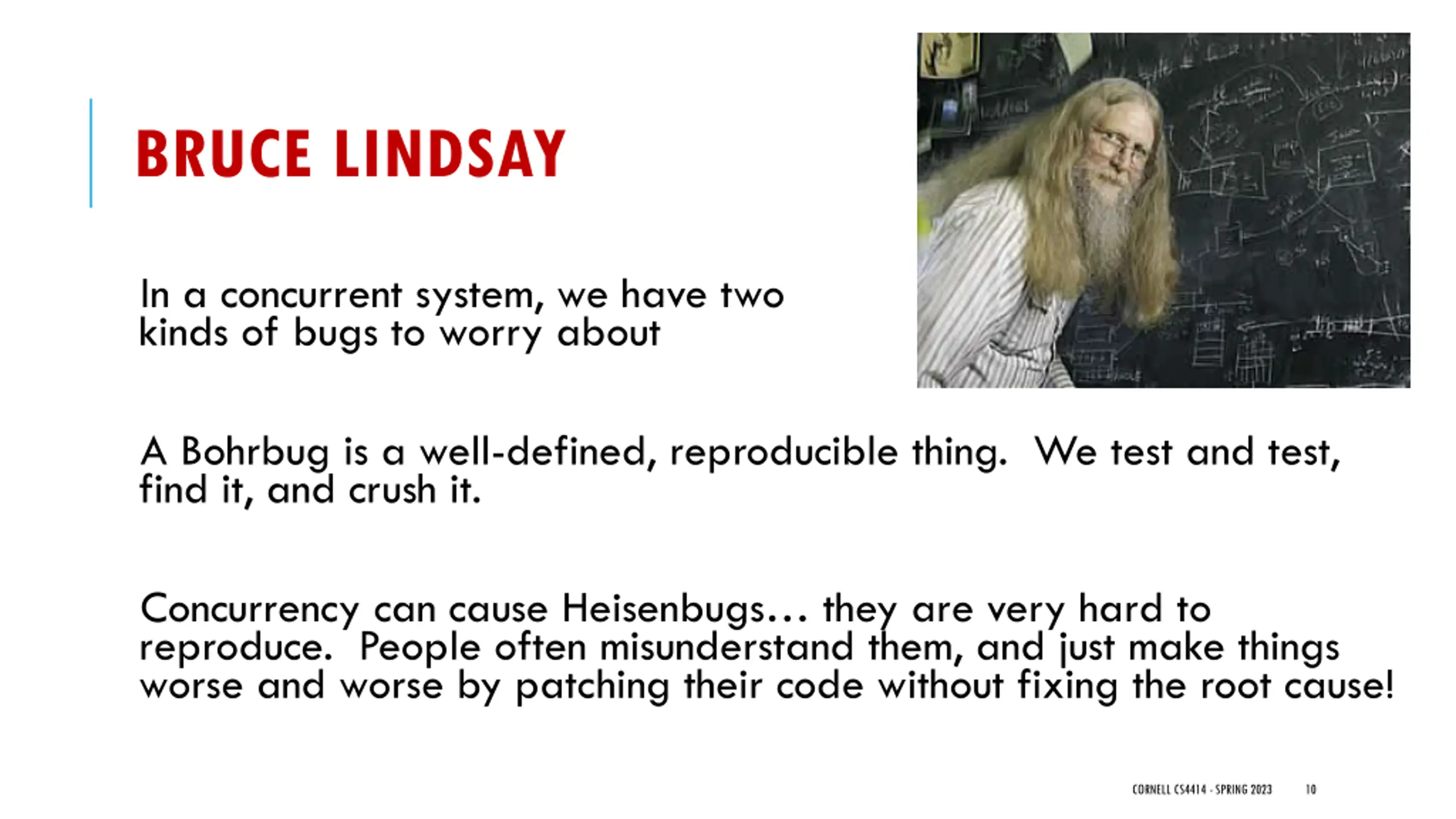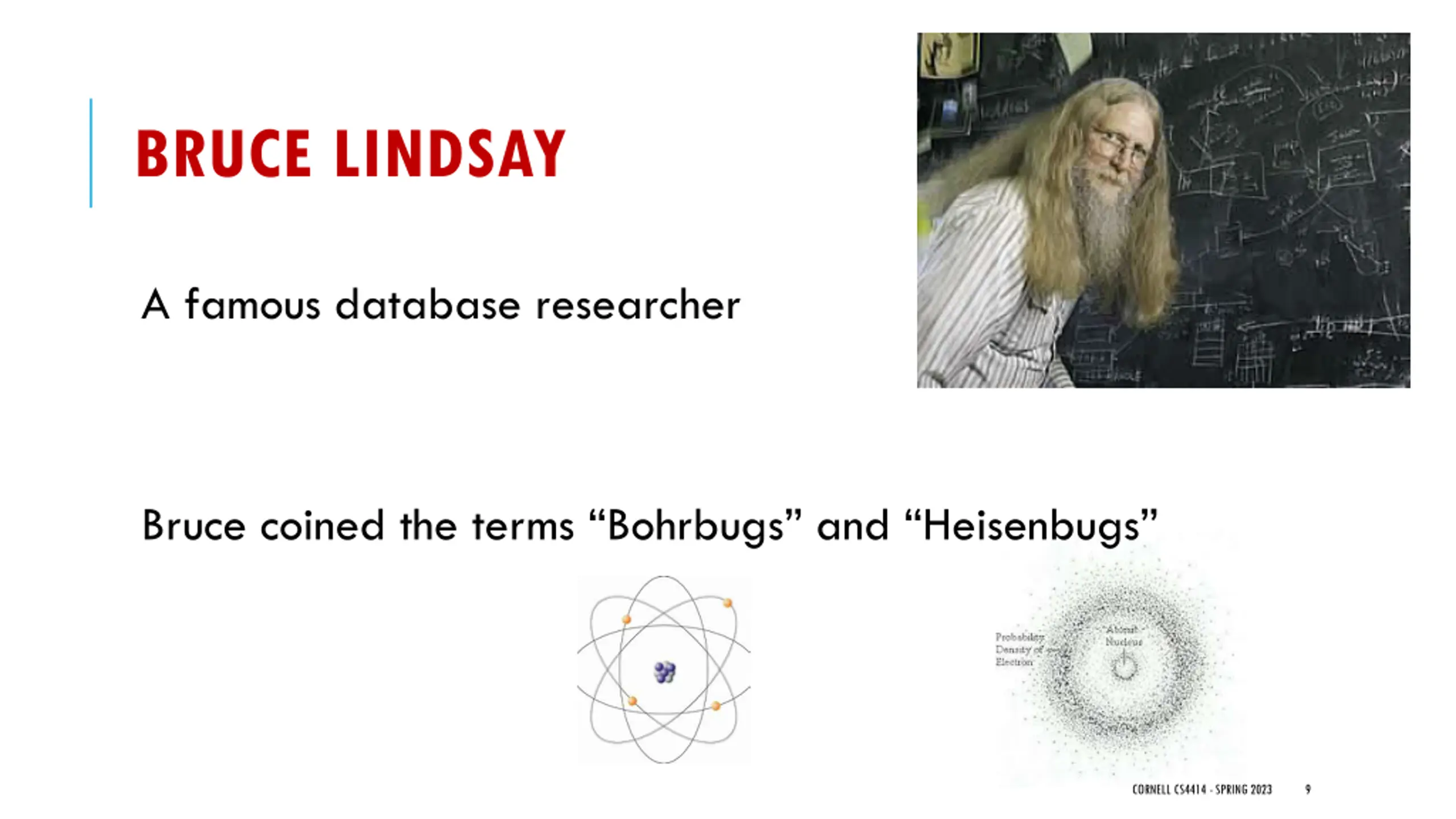 BRUCE LINDSAY A famous database researcher Bruce coined the terms Bohrbugs and Heisenbugs CORNELL CS4414 - SPRING 2023 9