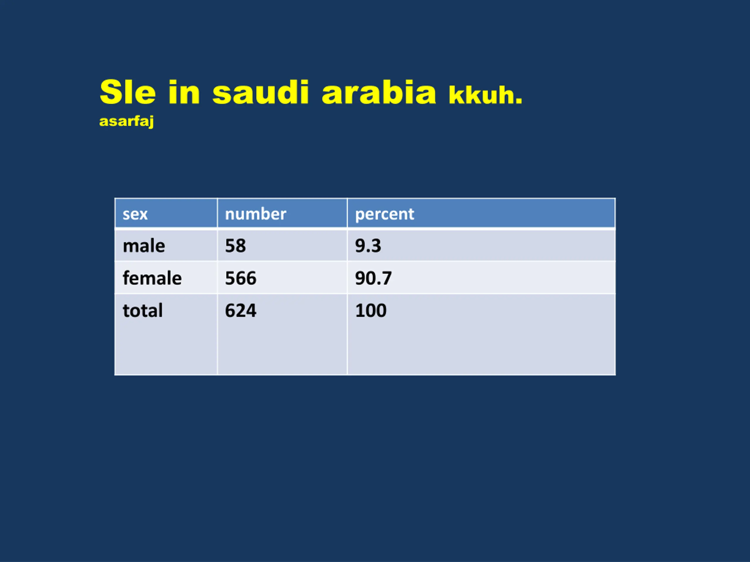 Sle in saudi arabia kkuh. asarfaj sex number percent male 58 9.3 female 566 90.7 total 624 100