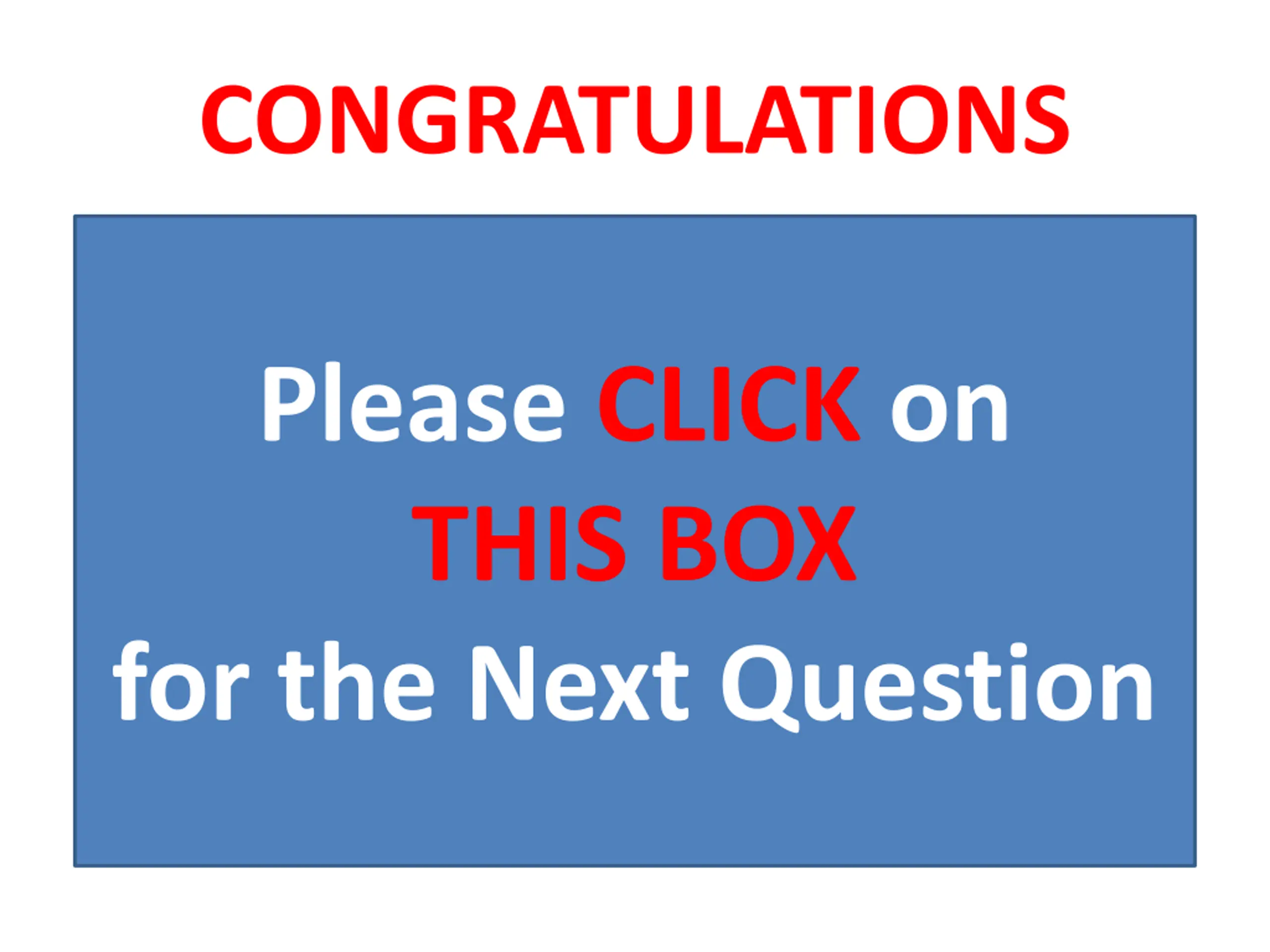 CONGRATULATIONS Please CLICK on THIS BOX for the Next Question Please CLICK on THIS BOX for the Next Question