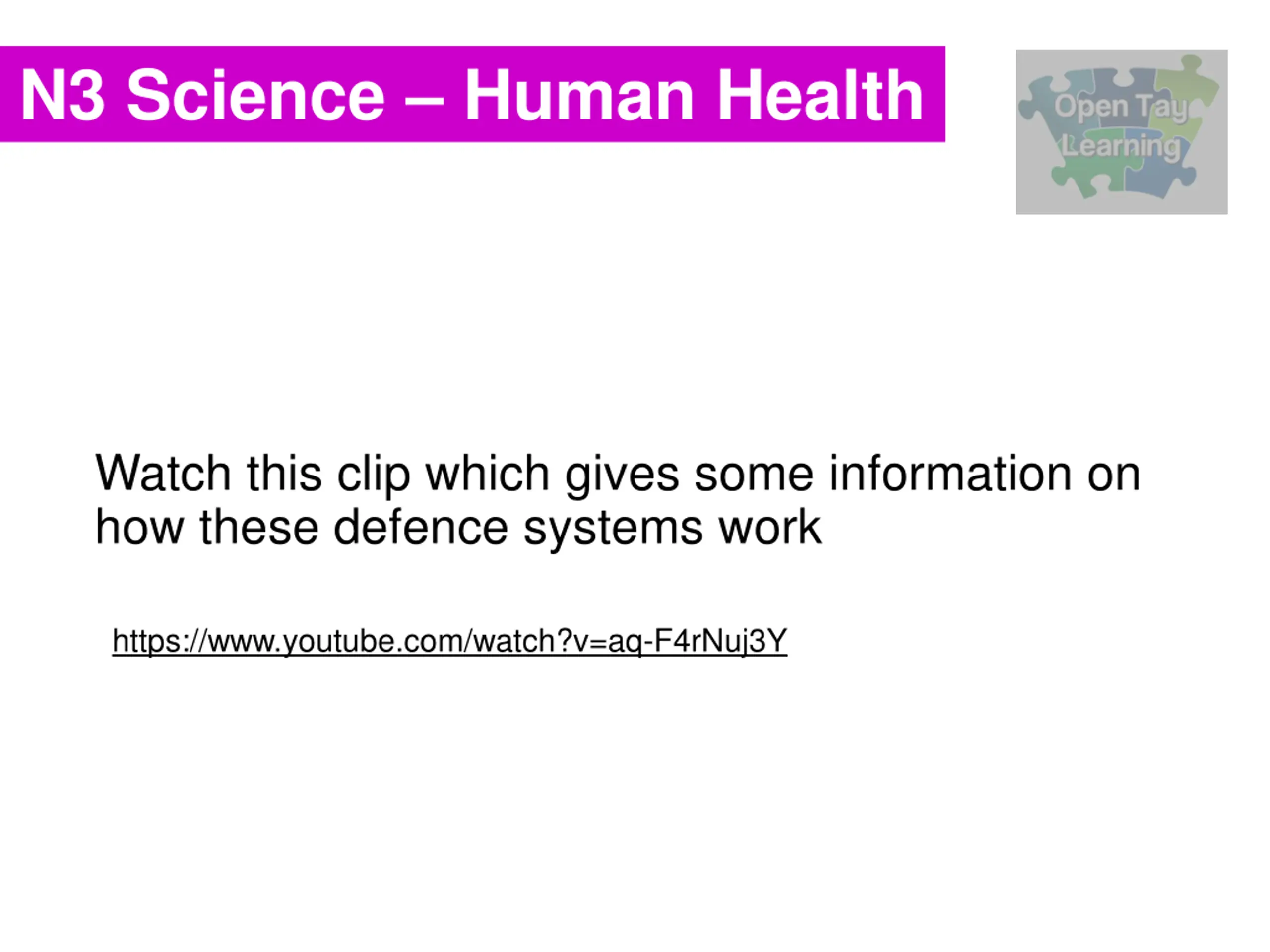 N3 Science Human Health Watch this clip which gives some information on how these defence systems work https://www.youtube.com/watch?v=aq-F4rNuj3Y