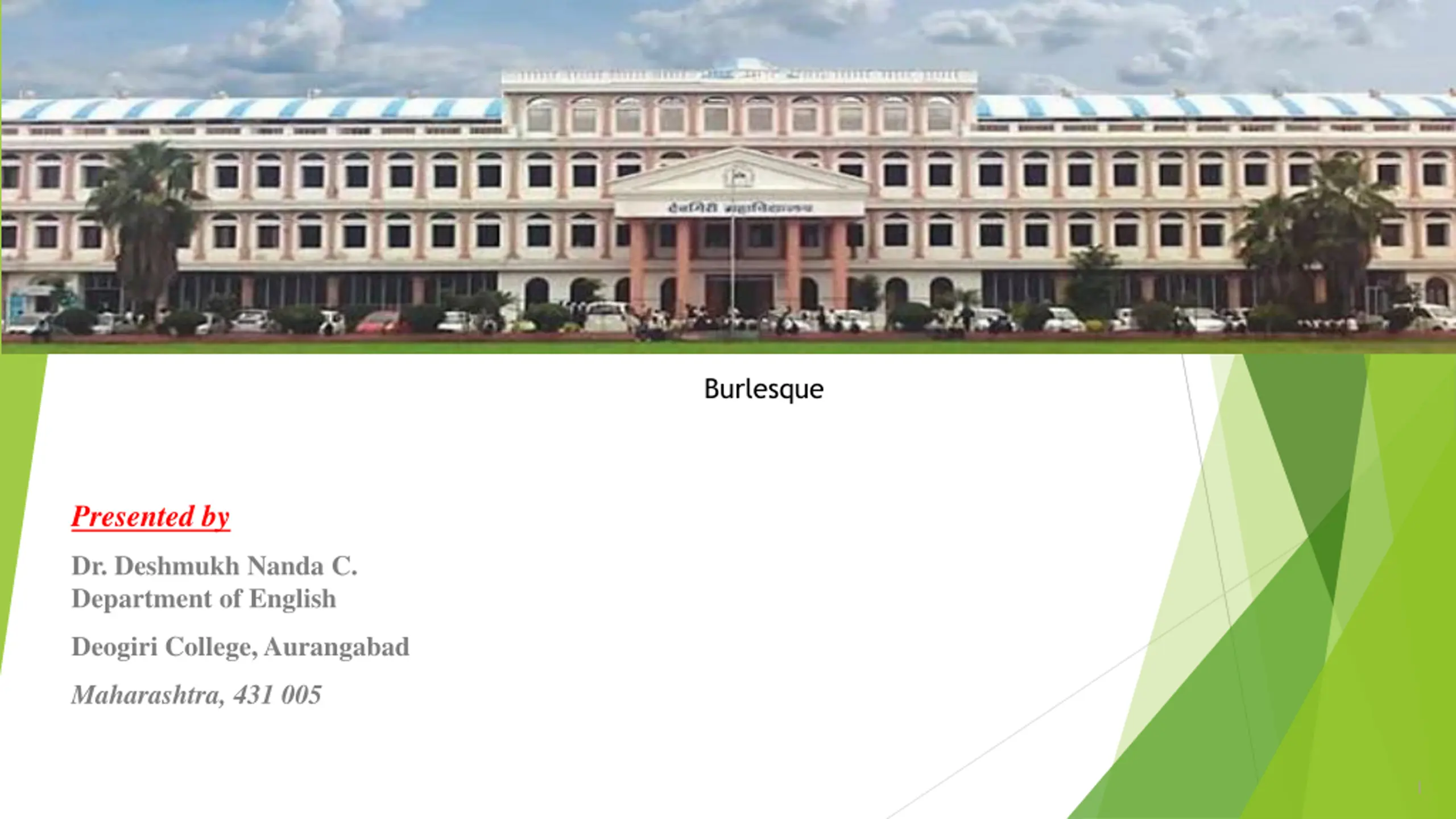 Burlesque Presented by Dr. Deshmukh Nanda C. Department of English Deogiri College, Aurangabad Maharashtra, 431 005 1