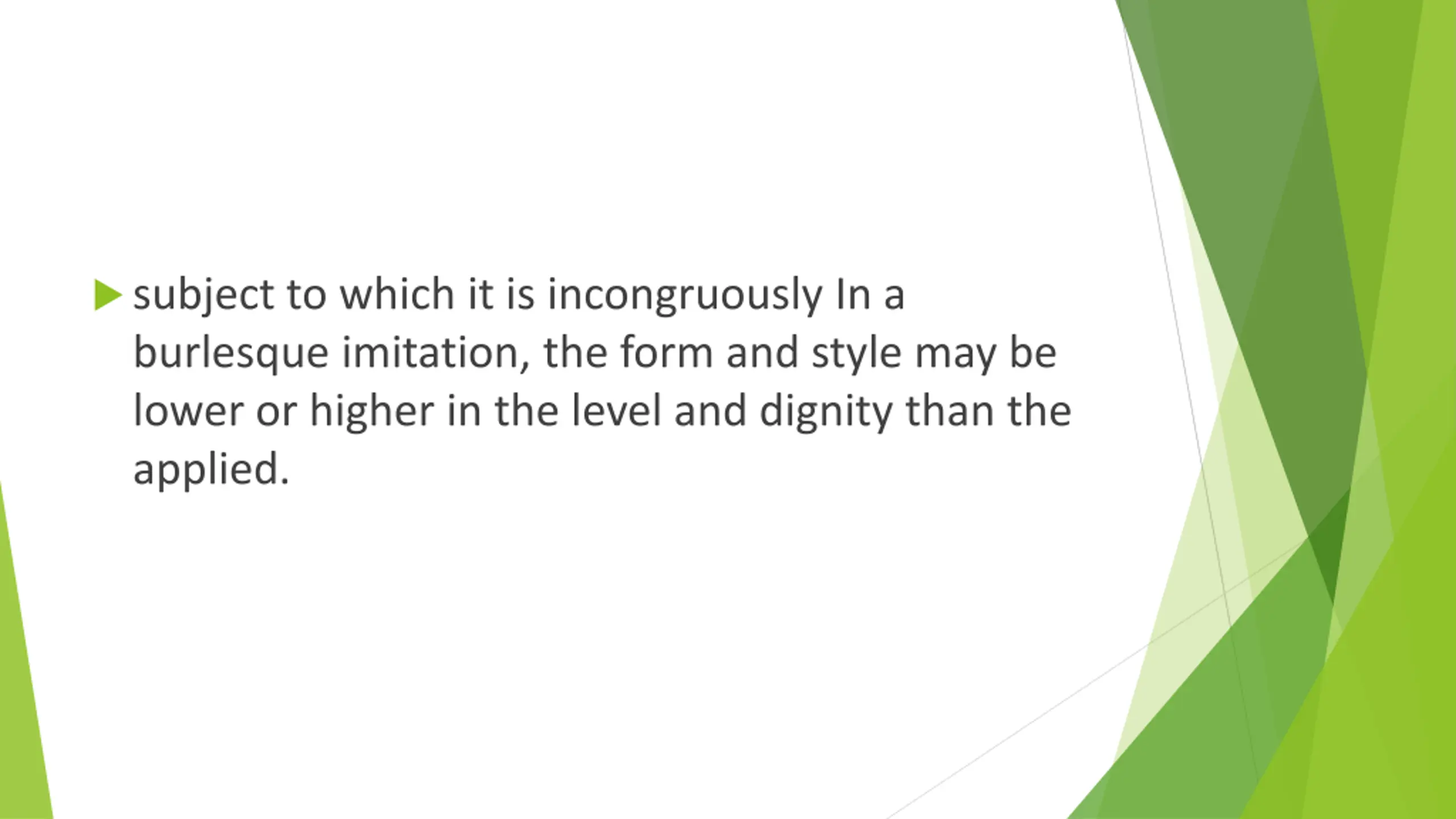 subject to which it is incongruously In a burlesque imitation, the form and style may be lower or higher in the level and dignity than the applied.