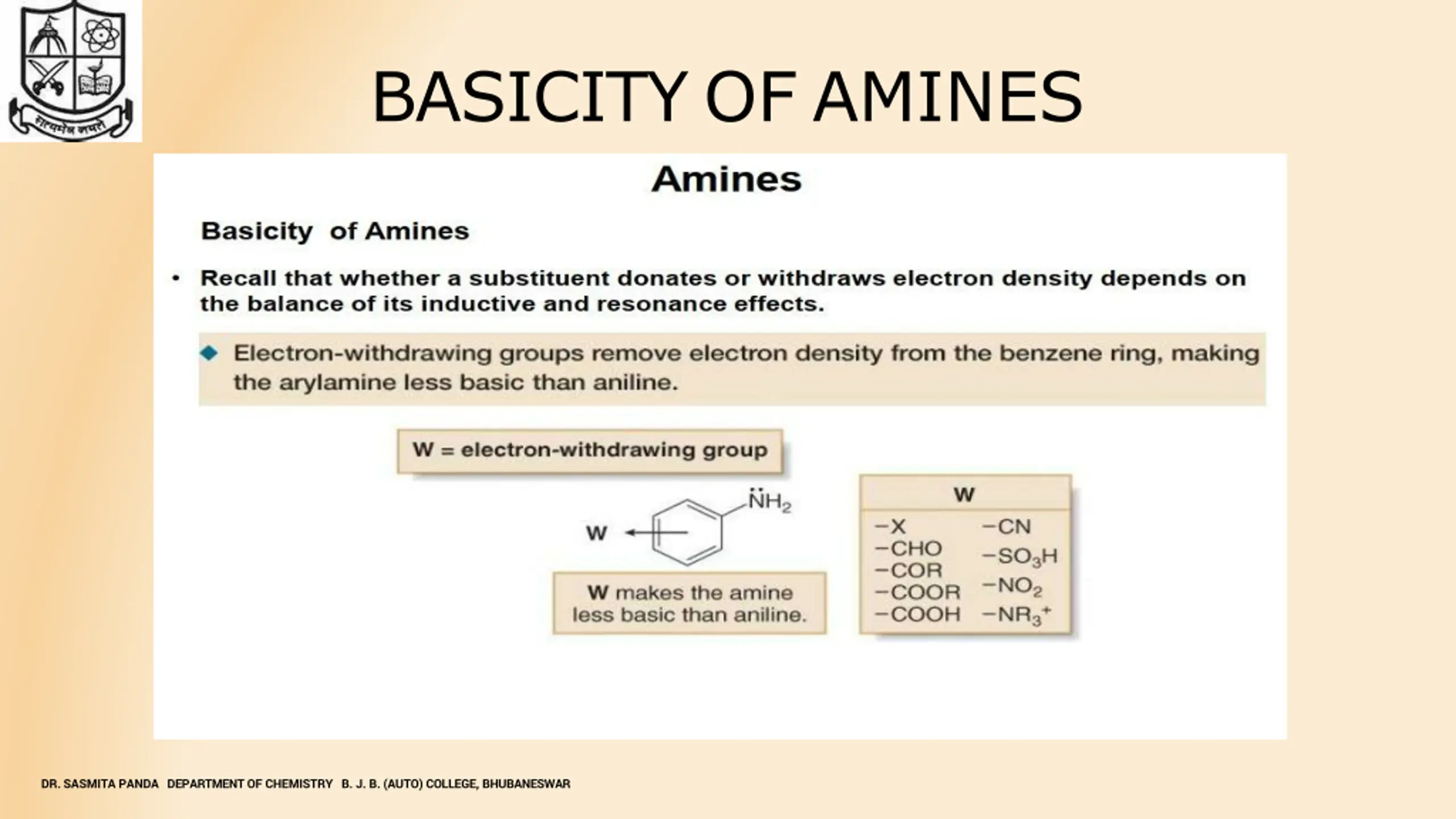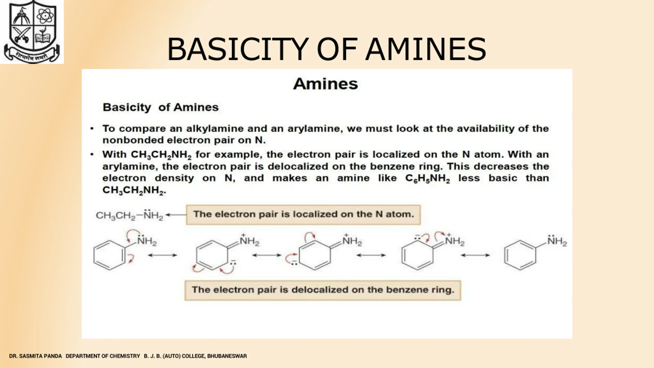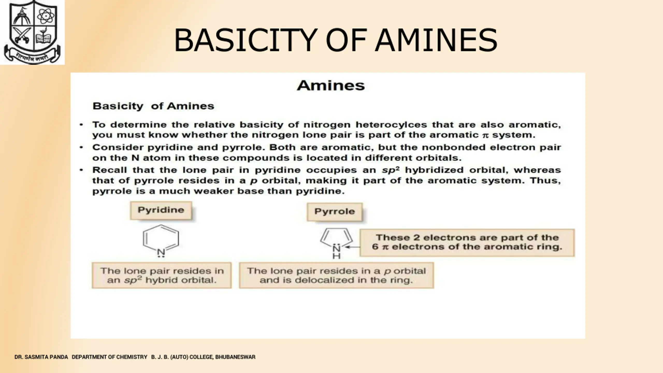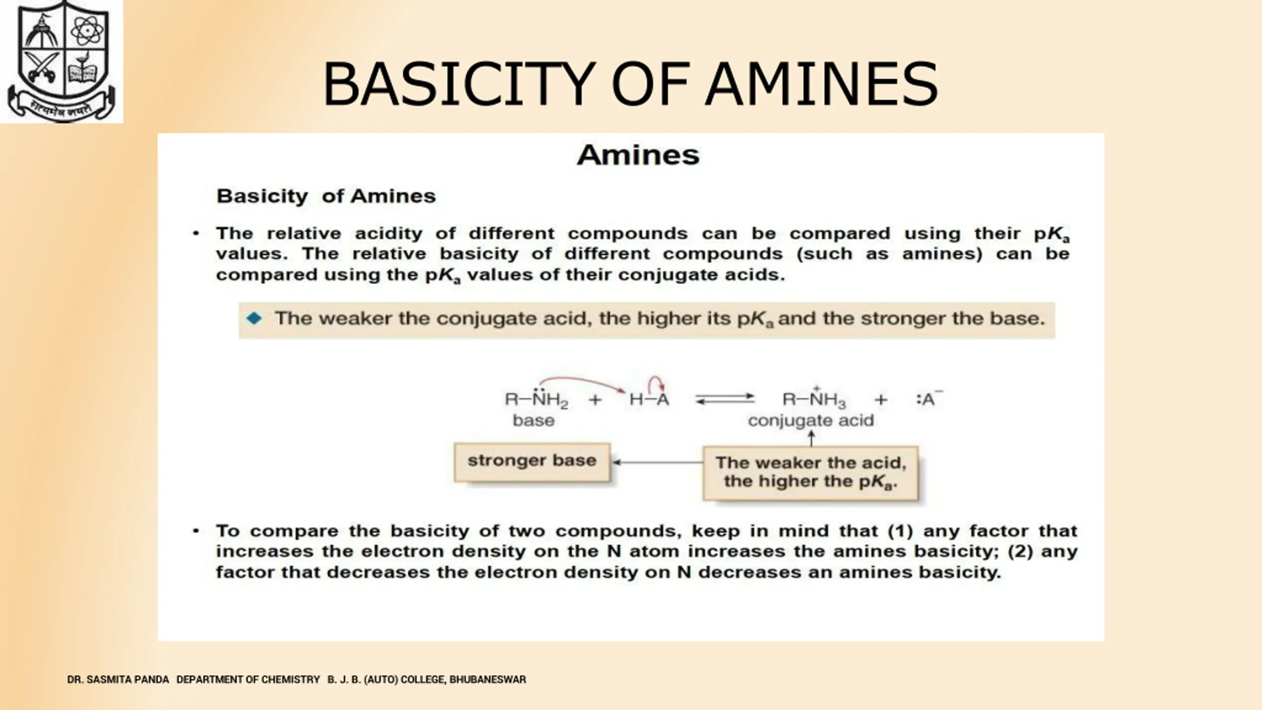 BASICITY OF AMINES DR. SASMITA PANDA DEPARTMENT OF CHEMISTRY B. J. B. (AUTO) COLLEGE, BHUBANESWAR