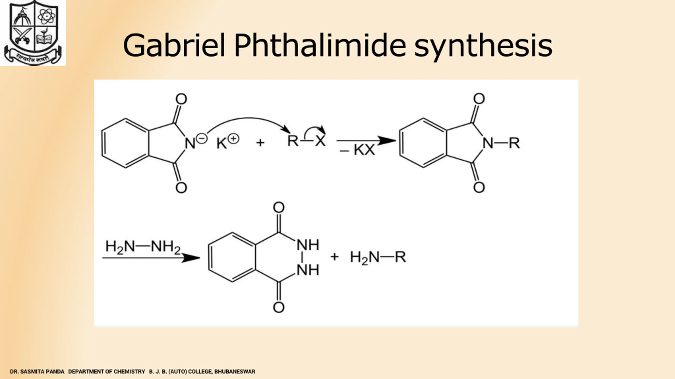 Gabriel Phthalimide synthesis The nitrogen of hydrazine is deprotonated by nitrogen of phthalimide which leads to the formation of an uncharged species. DR. SASMITA PANDA DEPARTMENT OF CHEMISTRY B. J. B. (AUTO) COLLEGE, BHUBANESWAR