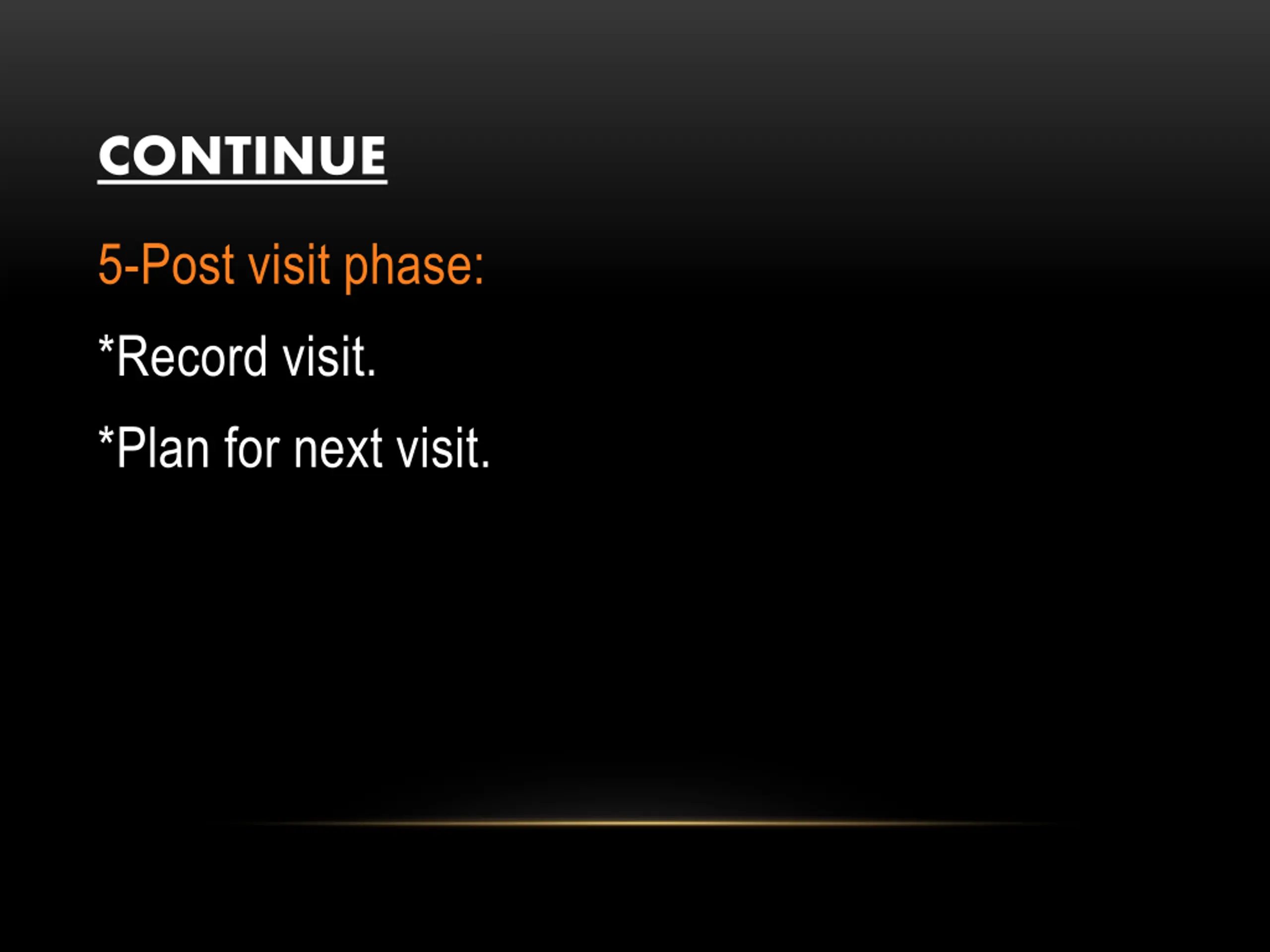 CONTINUE 5-Post visit phase: *Record visit. *Plan for next visit.