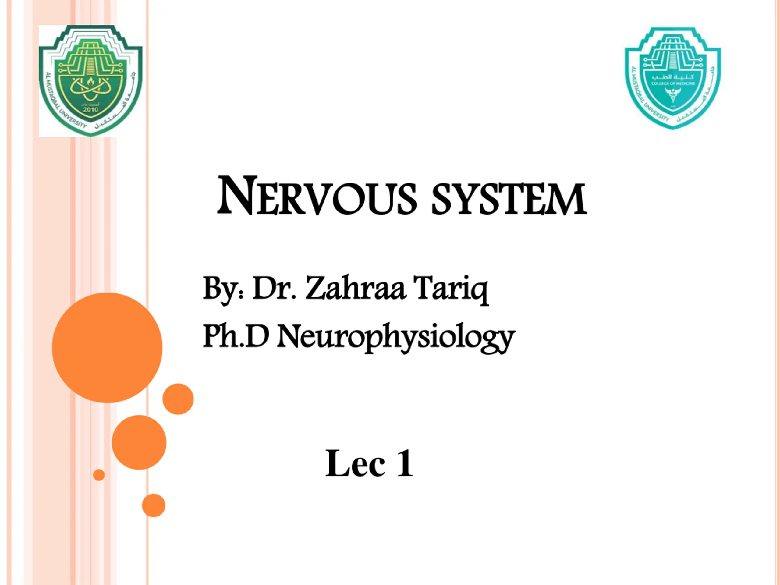 N NERVOUS ERVOUS SYSTEM SYSTEM By: Dr. Ph.D By: Dr. Zahraa Ph.D Neurophysiology Zahraa Tariq Neurophysiology Tariq Lec 1