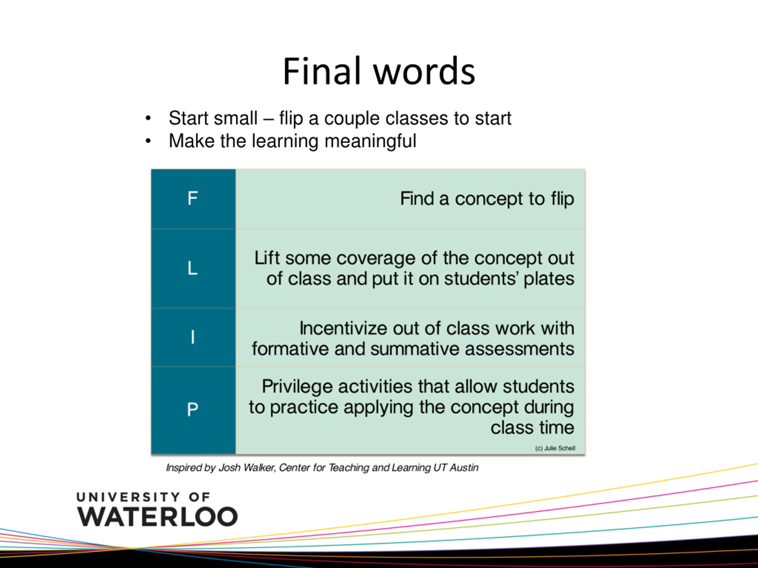 Final words Start small flip a couple classes to start Make the learning meaningful