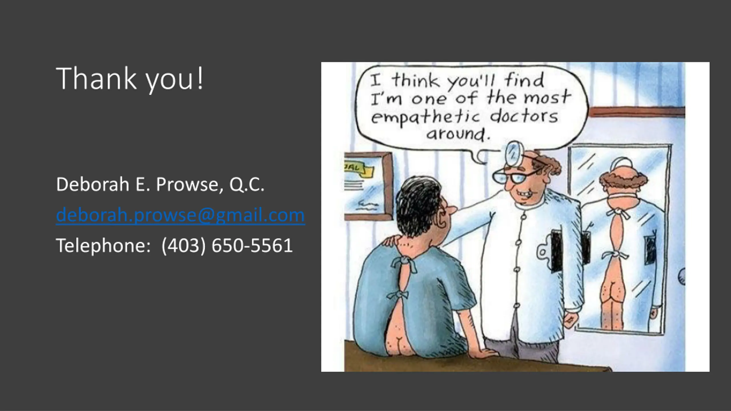 Thank you! Deborah E. Prowse, Q.C. deborah.prowse@gmail.com Telephone: (403) 650-5561