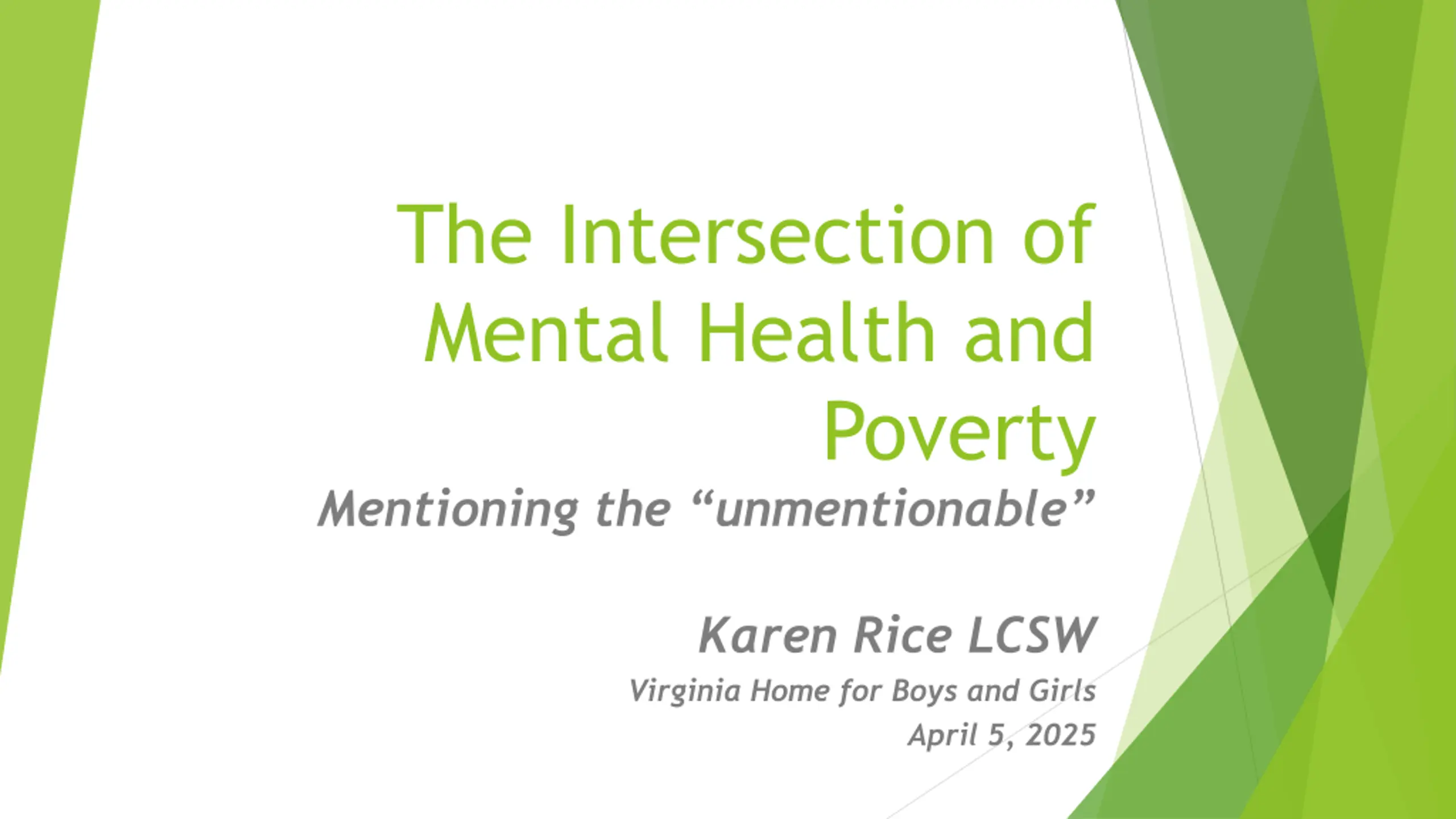 The Intersection of Mental Health and Poverty Mentioning the unmentionable Karen Rice LCSW Virginia Home for Boys and Girls April 5, 2025