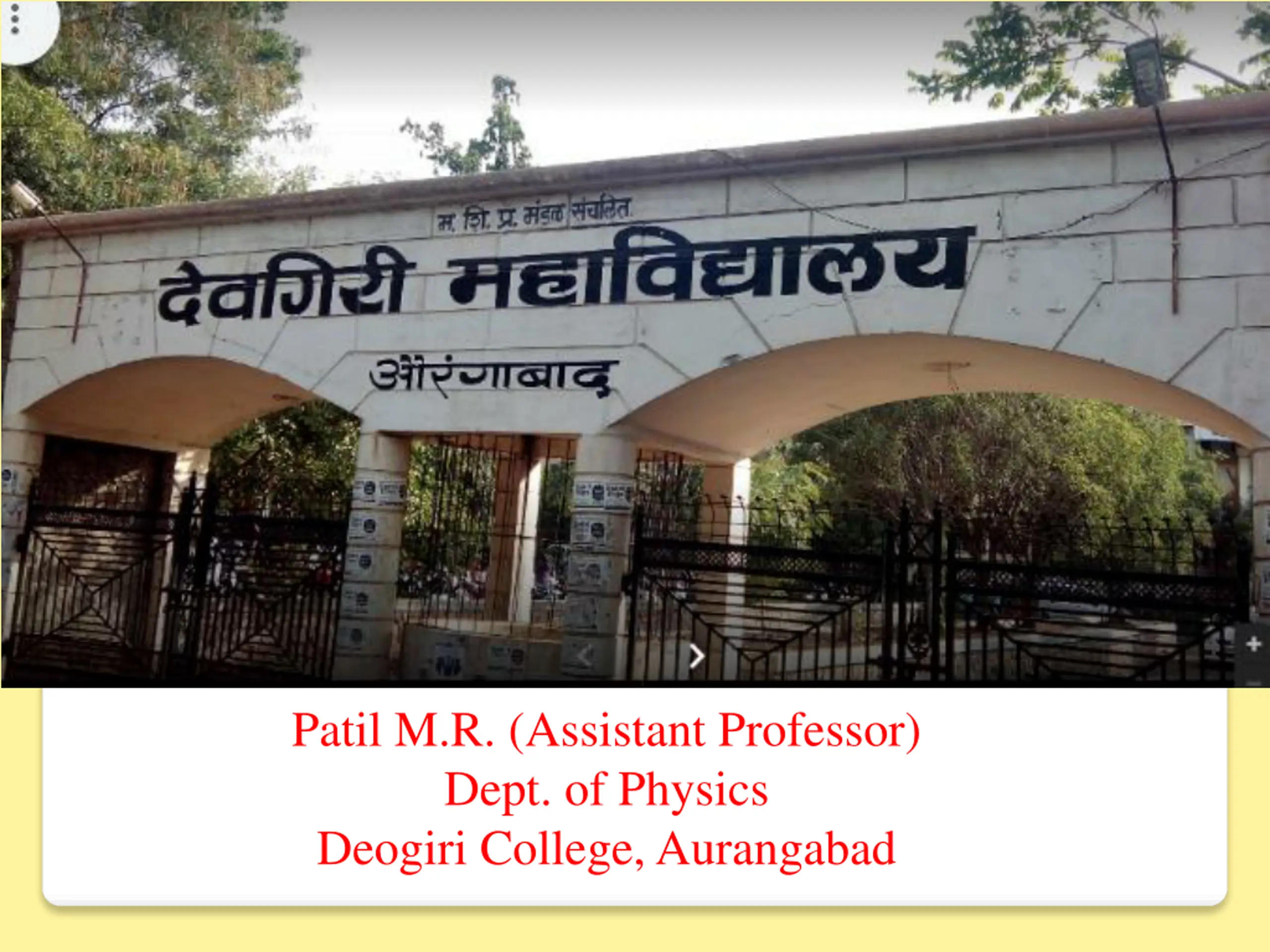 Patil M.R. (Assistant Professor) Dept. of Physics Deogiri College, Aurangabad