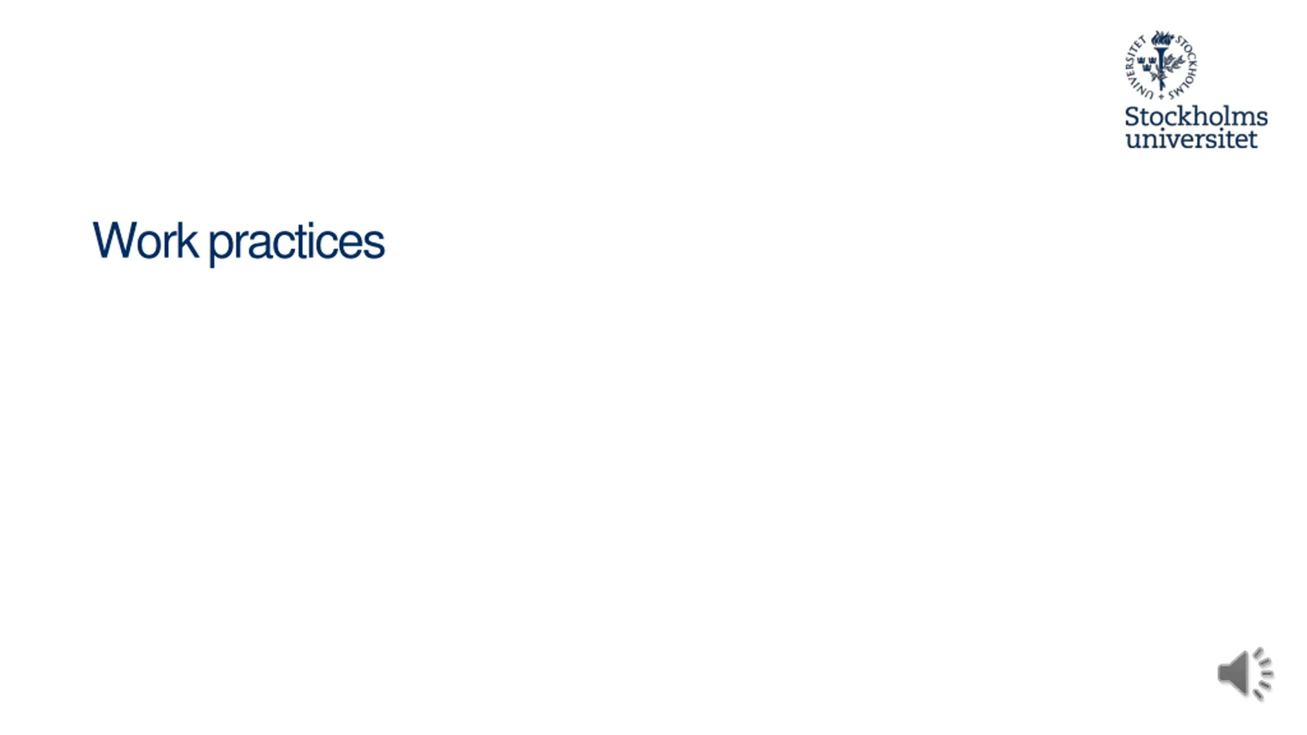 Work practices Adler and Pouliot (2011) suggest five key characteristics of a work practice: ... cont practice rests on background knowledge, and 5) practice weaves together the discursive and the material world, 6) i.e., without written and spoken communication people cannot make a difference between behavior and practice, and artefacts in the material world are used to carry out the practice Adler, E., and Pouliot, V. (2011). International practices: introduction and framework. In: Adler E, Pouliot V (eds) International Practices. Cambridge University Press, pp. 3 35.