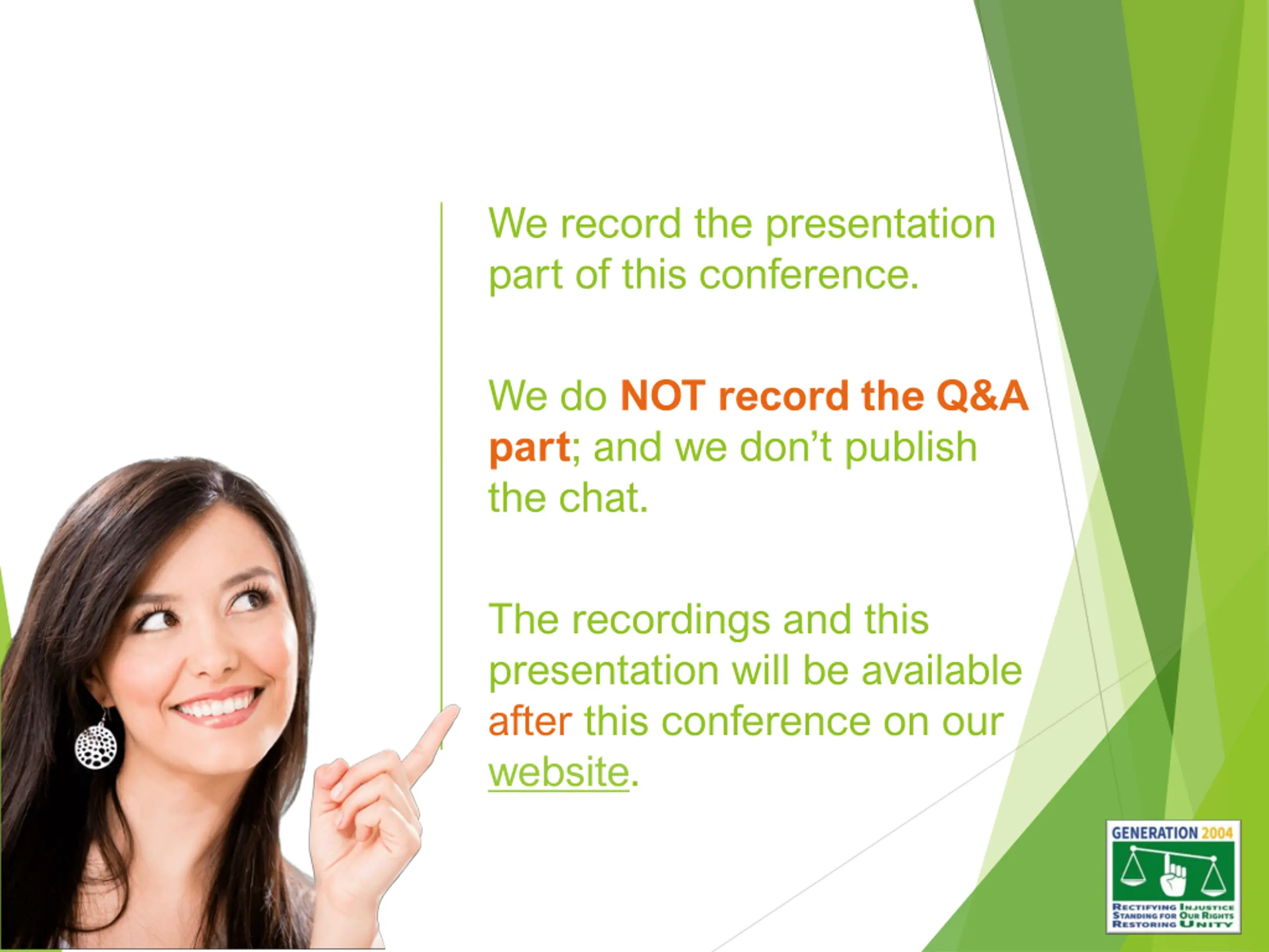 We record the presentation part of this conference. We do NOT record the Q&A part; and we don t publish the chat. The recordings and this presentation will be available after this conference on our website.