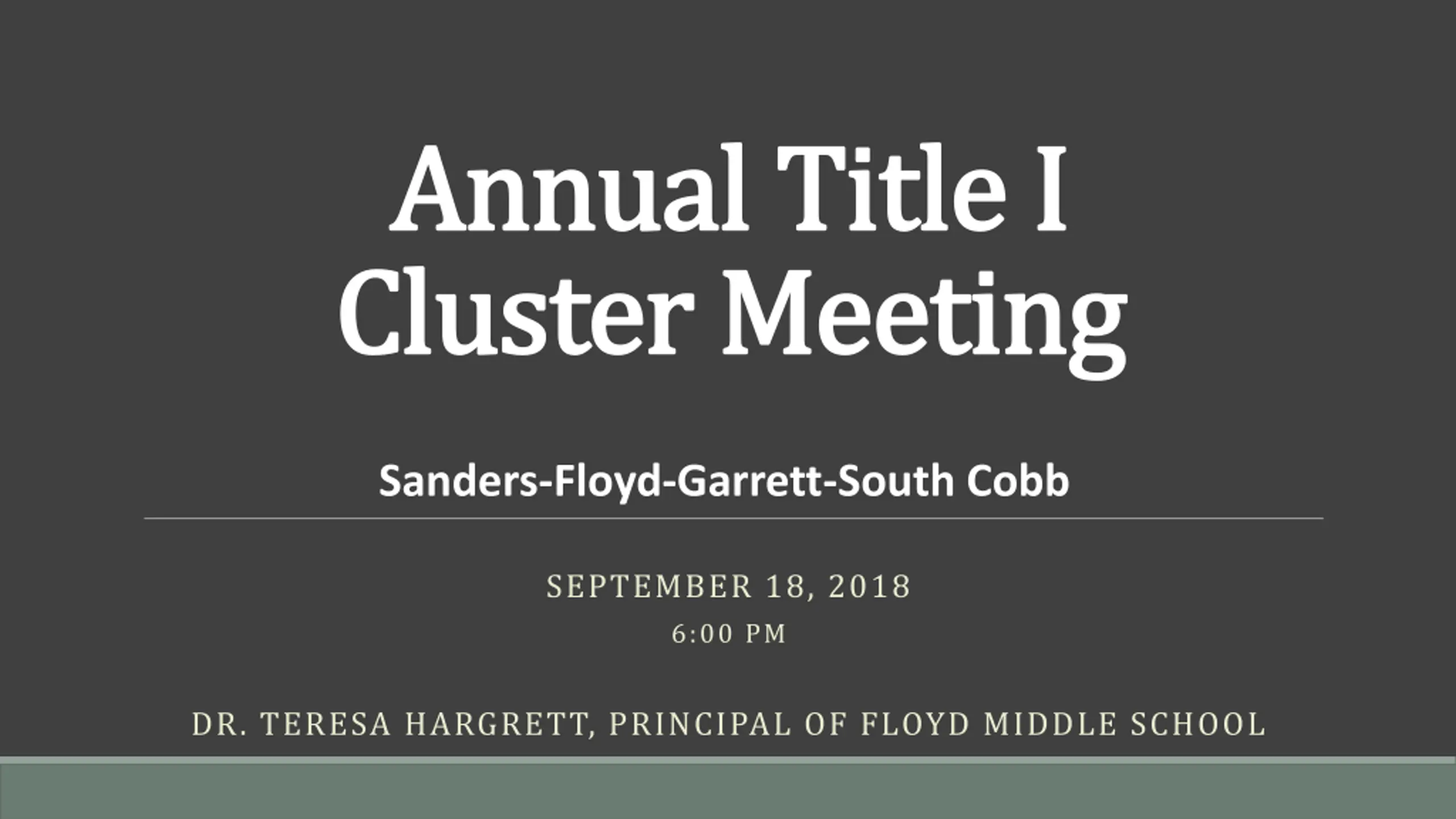 Annual Title I Annual Title I Cluster Meeting Cluster Meeting Sanders-Floyd-Garrett-South Cobb SEPTEMBER 18, 2018 6:00 PM DR. TERESA HARGRETT, PRINCIPAL OF FLOYD MIDDLE SCHOOL