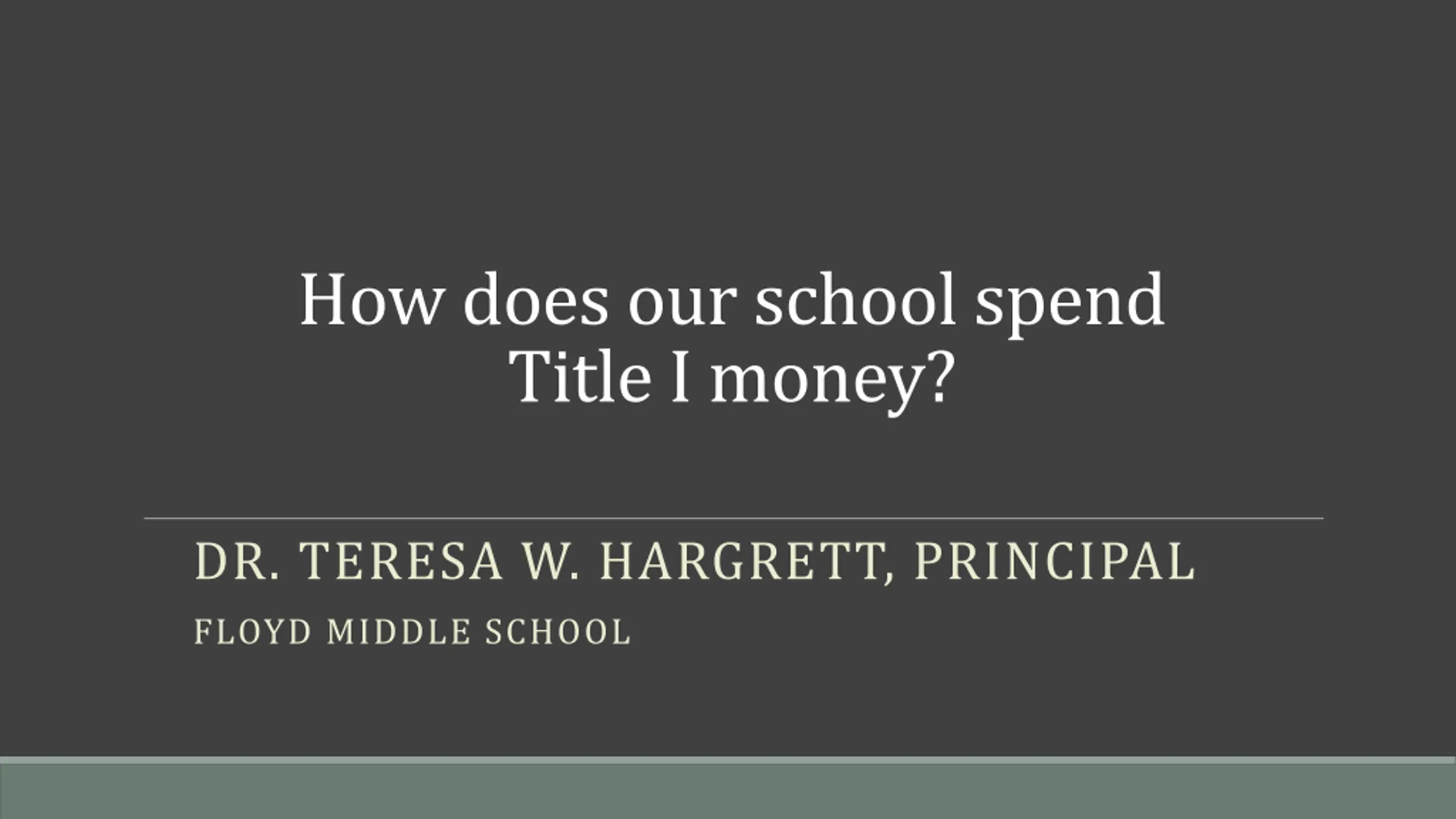 How does our school spend Title I money? DR. TERESA W. HARGRETT, PRINCIPAL FLOYD MIDDLE SCHOOL