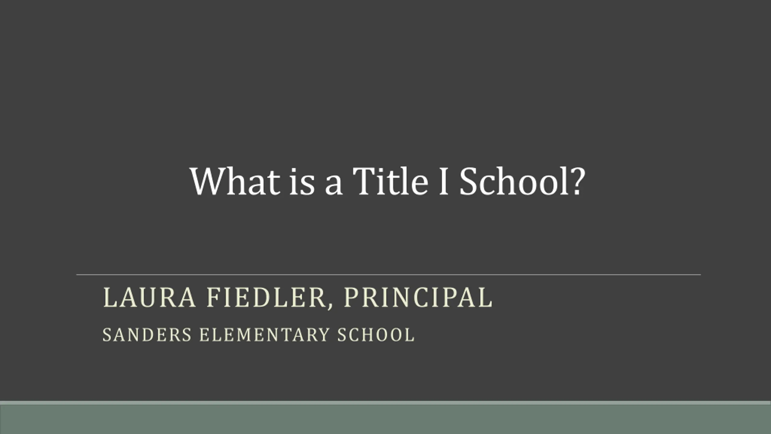 What is a Title I School? LAURA FIEDLER, PRINCIPAL SANDERS ELEMENTARY SCHOOL