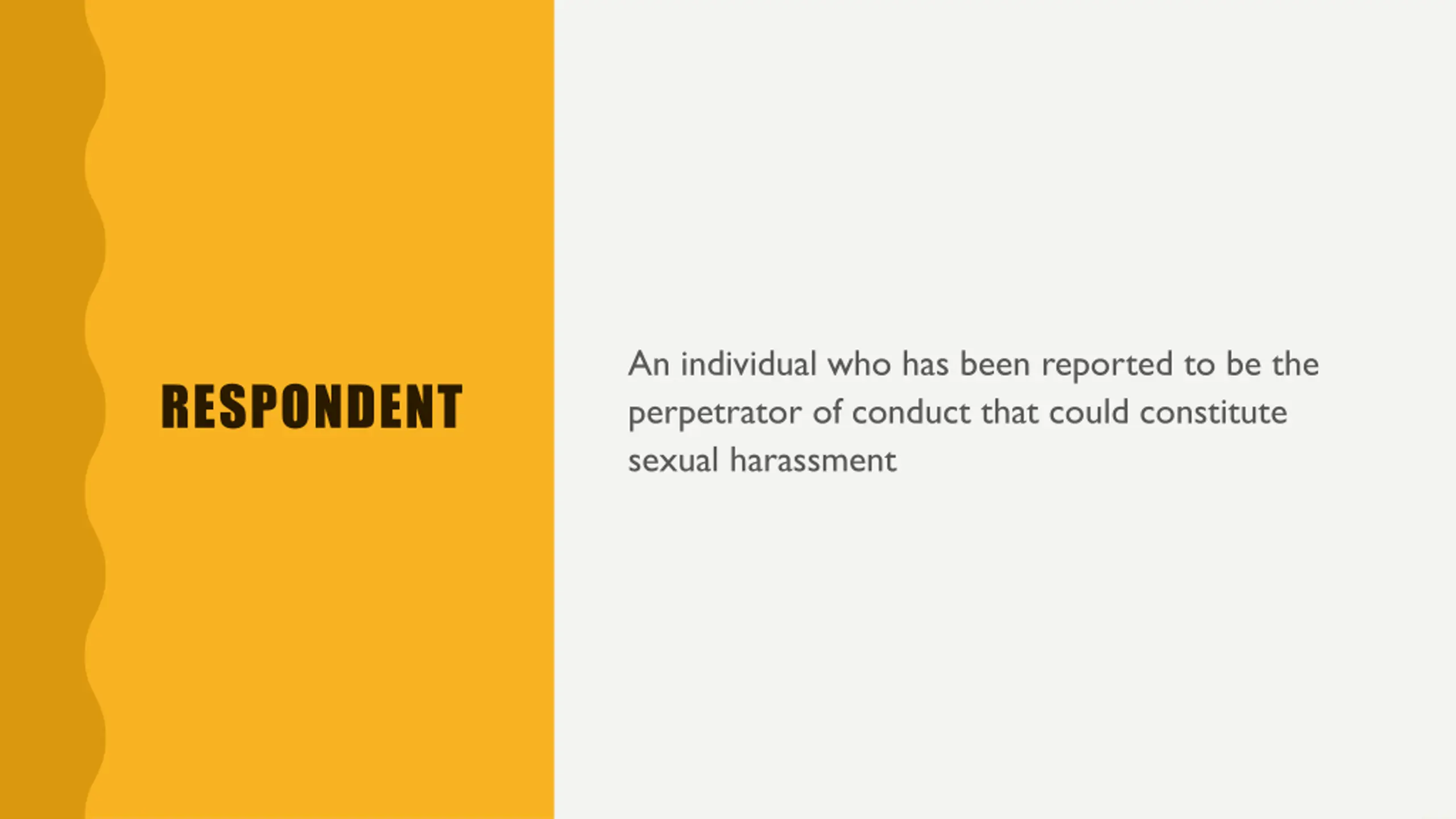 An individual who has been reported to be the perpetrator of conduct that could constitute sexual harassment RESPONDENT