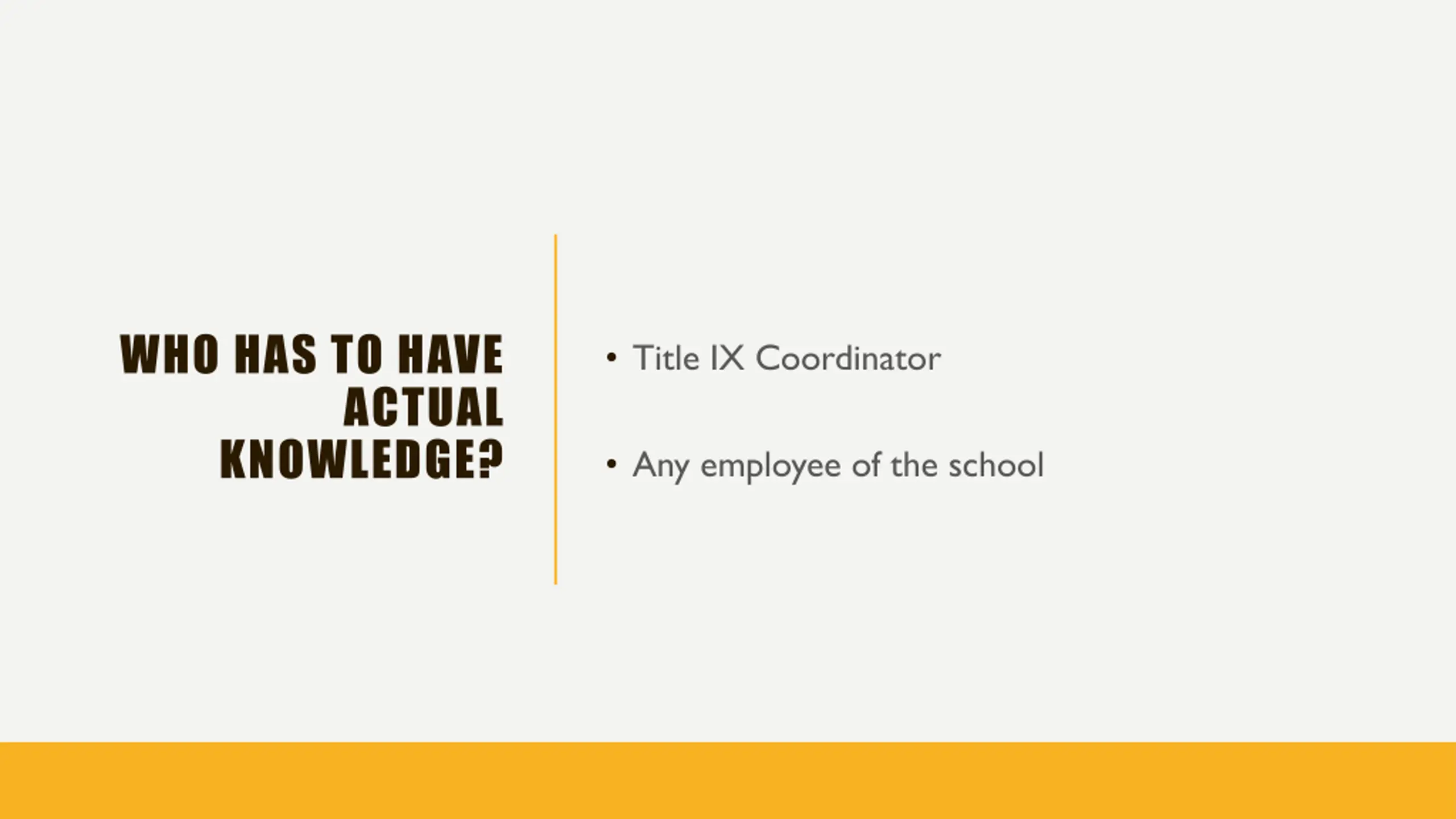 WHO HAS TO HAVE Title IX Coordinator ACTUAL KNOWLEDGE? Any employee of the school