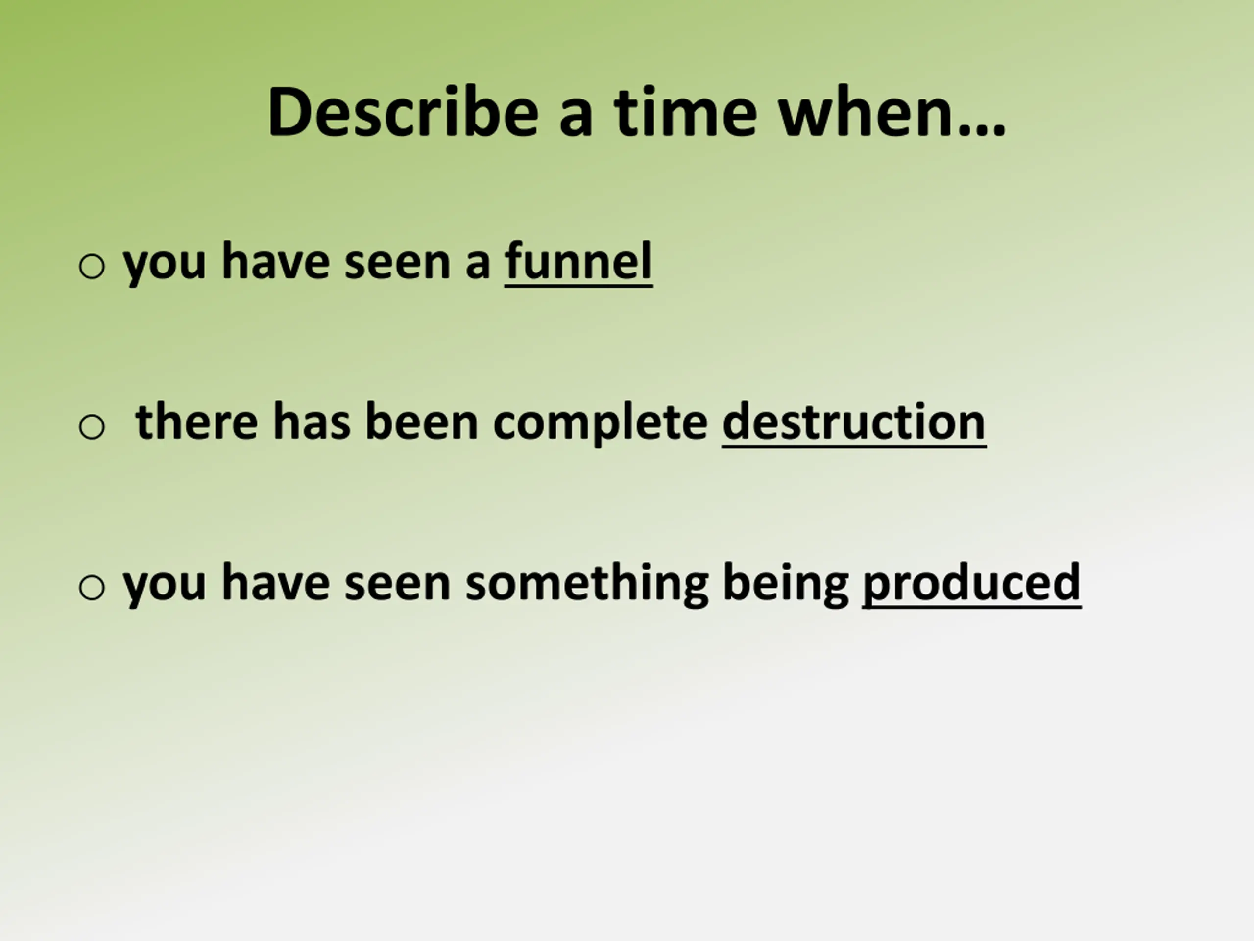 Describe a time when o you have seen a funnel o there has been complete destruction o you have seen something being produced