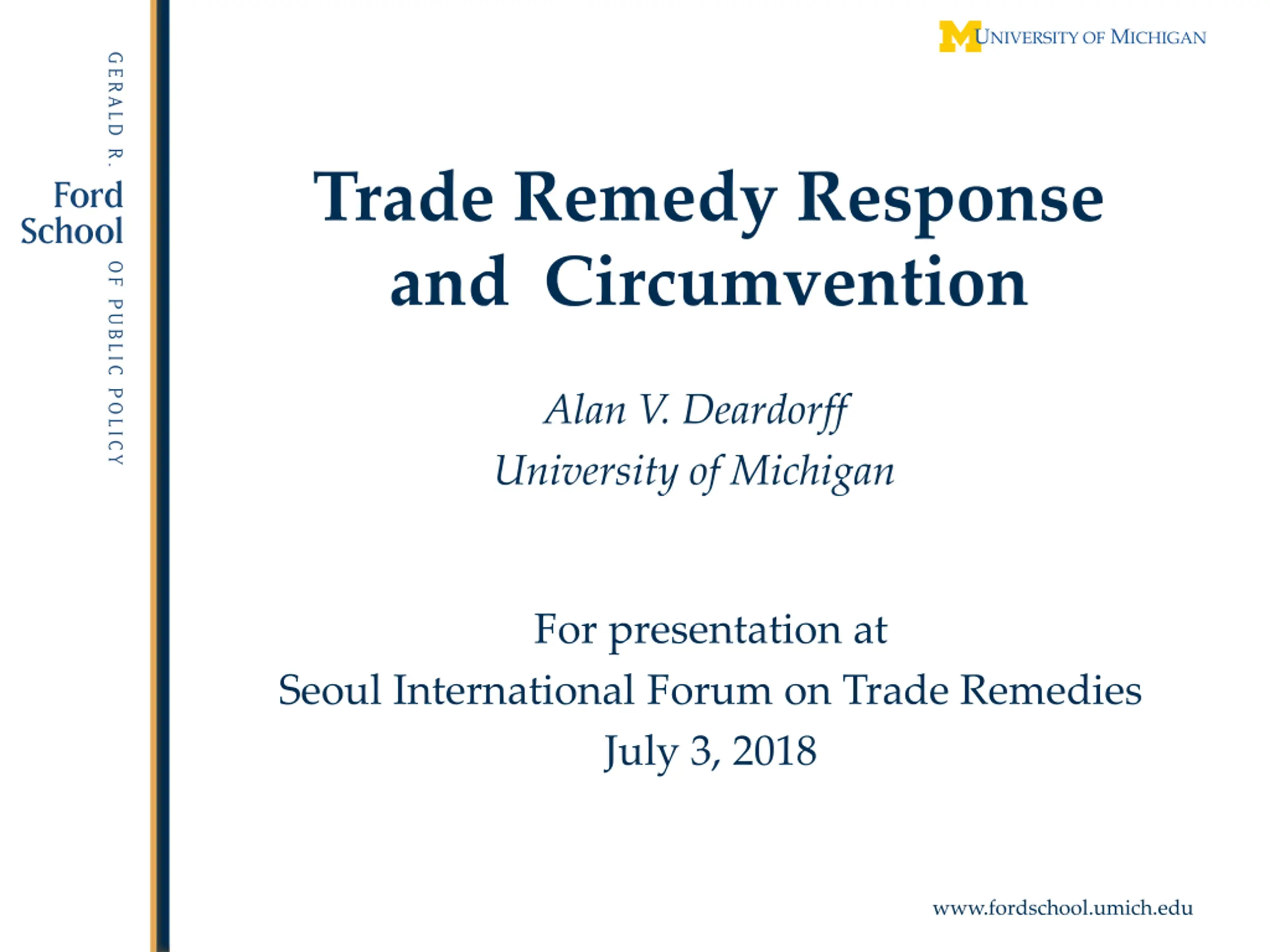 Trade Remedy Response and Circumvention Alan V. Deardorff University of Michigan For presentation at Seoul International Forum on Trade Remedies July 3, 2018 www.fordschool.umich.edu