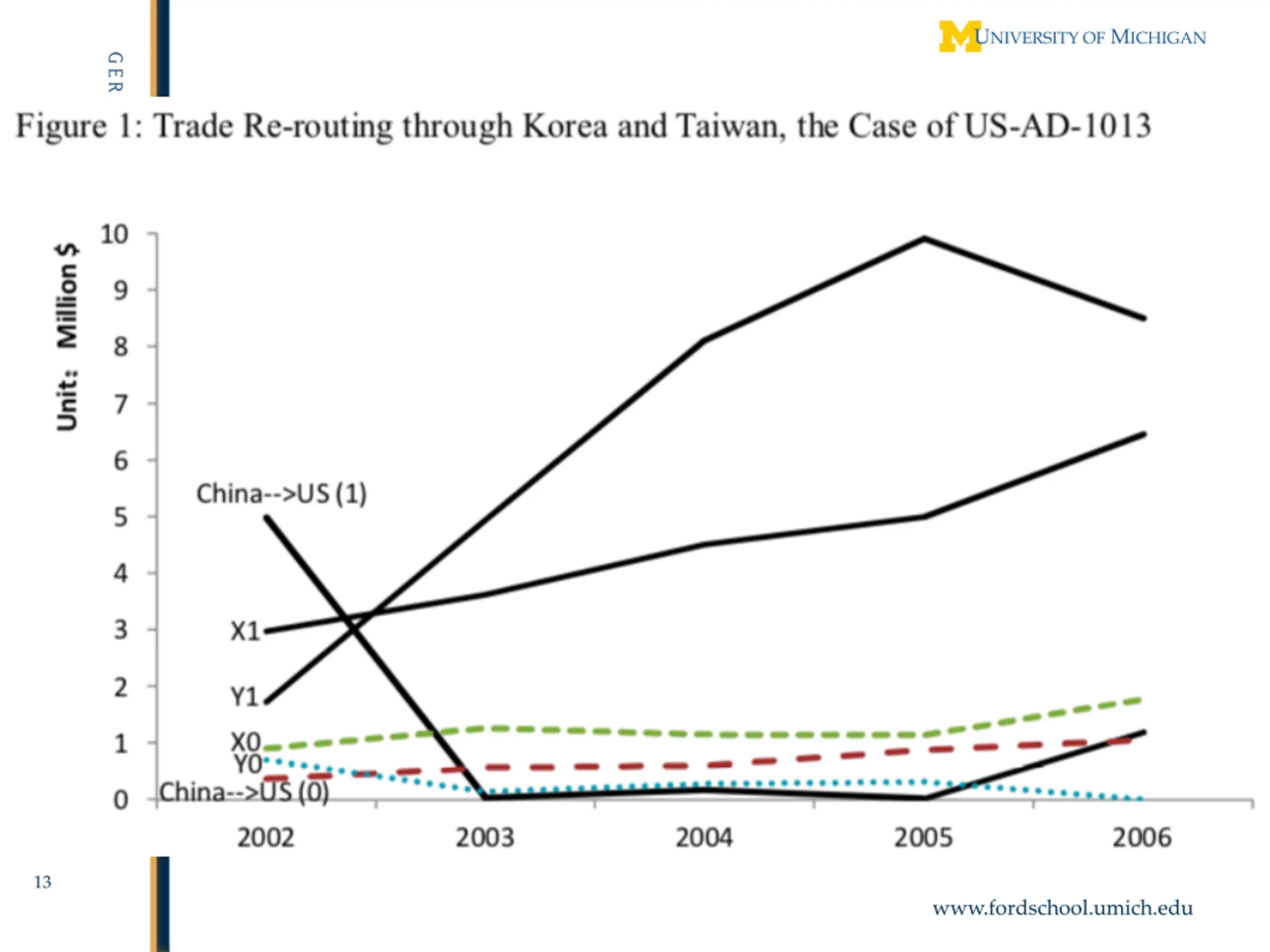 Circumvention Examples Transshipment Studied by Liu and Shi (2016) Found evidence that ADD led to Reduced imports from target country Increased imports from non-target countries Example: Saccharin and Its Salts from China, 2002 12 www.fordschool.umich.edu
