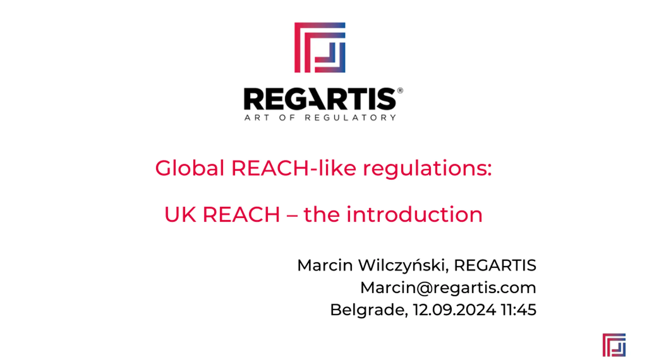 Global REACH-like regulations: UK REACH the introduction Marcin Wilczy ski, REGARTIS Marcin@regartis.com Belgrade, 12.09.2024 11:45
