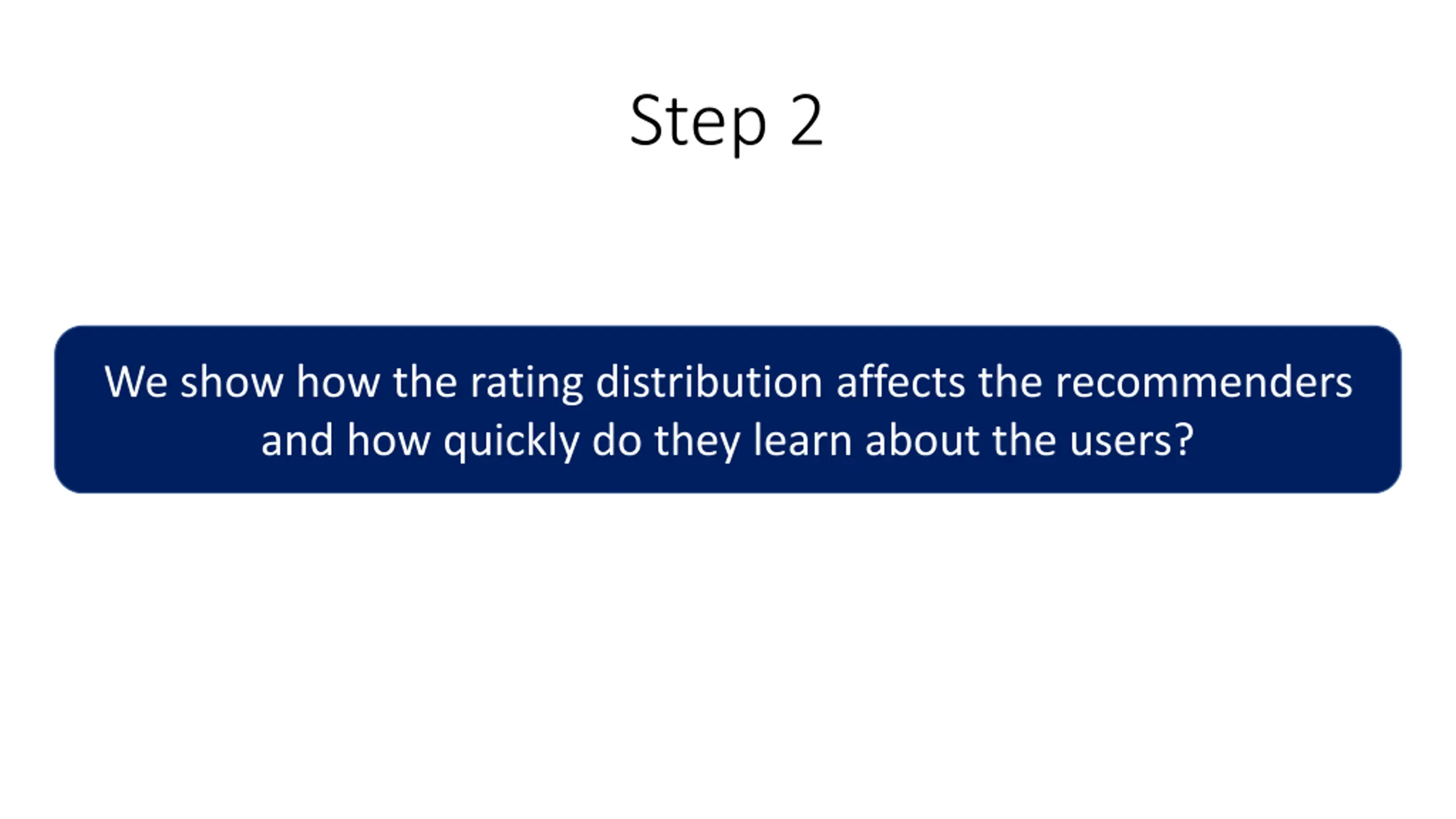 Step 2 We show how the rating distribution affects the recommenders and how quickly do they learn about the users?