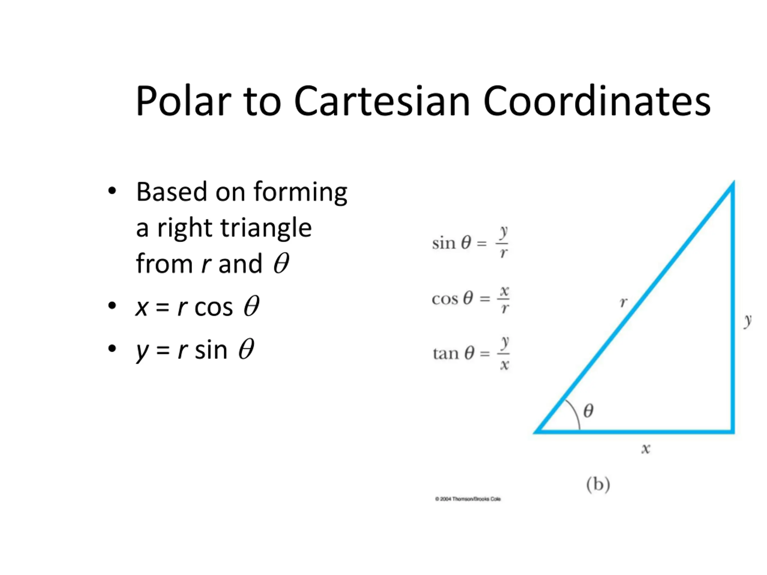 Polar to Cartesian Coordinates Based on forming a right triangle from r and x = r cos y = r sin