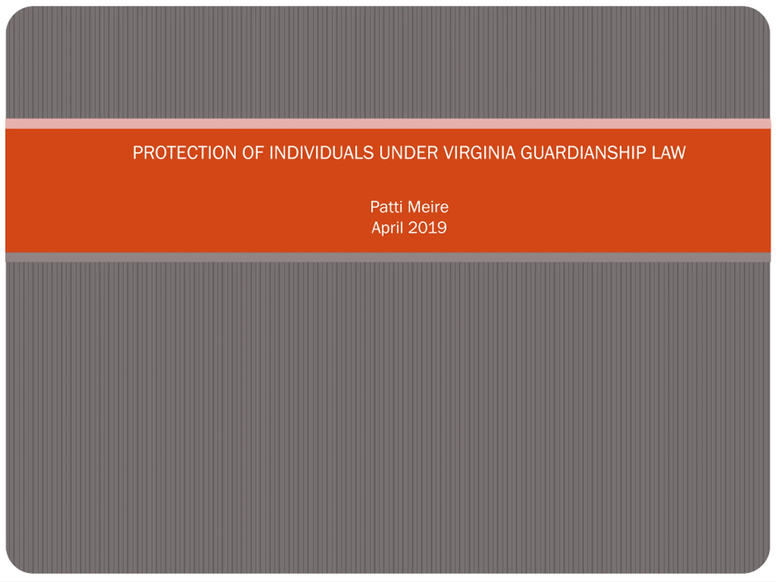 PROTECTION OF INDIVIDUALS UNDER VIRGINIA GUARDIANSHIP LAW Patti Meire April 2019