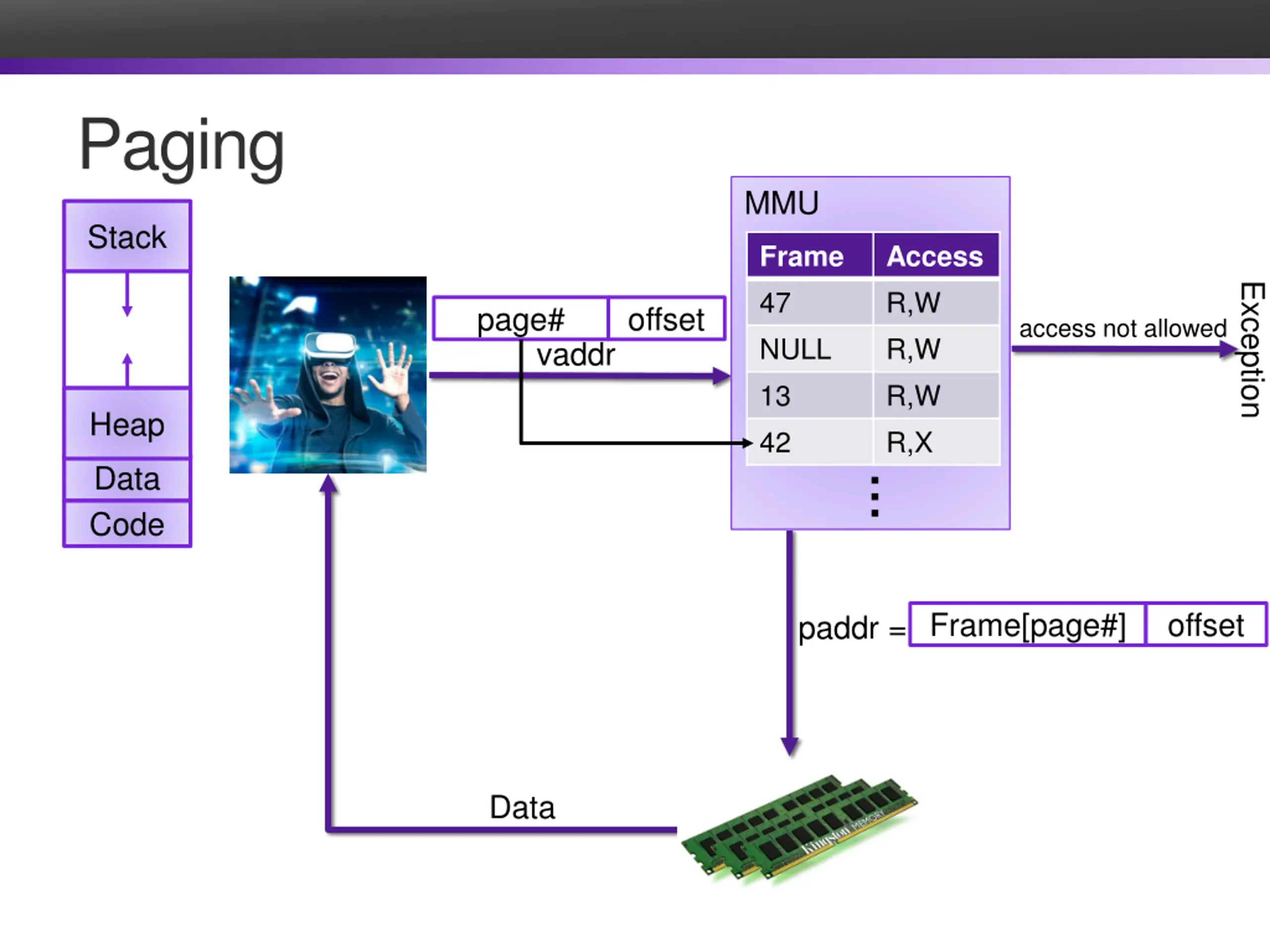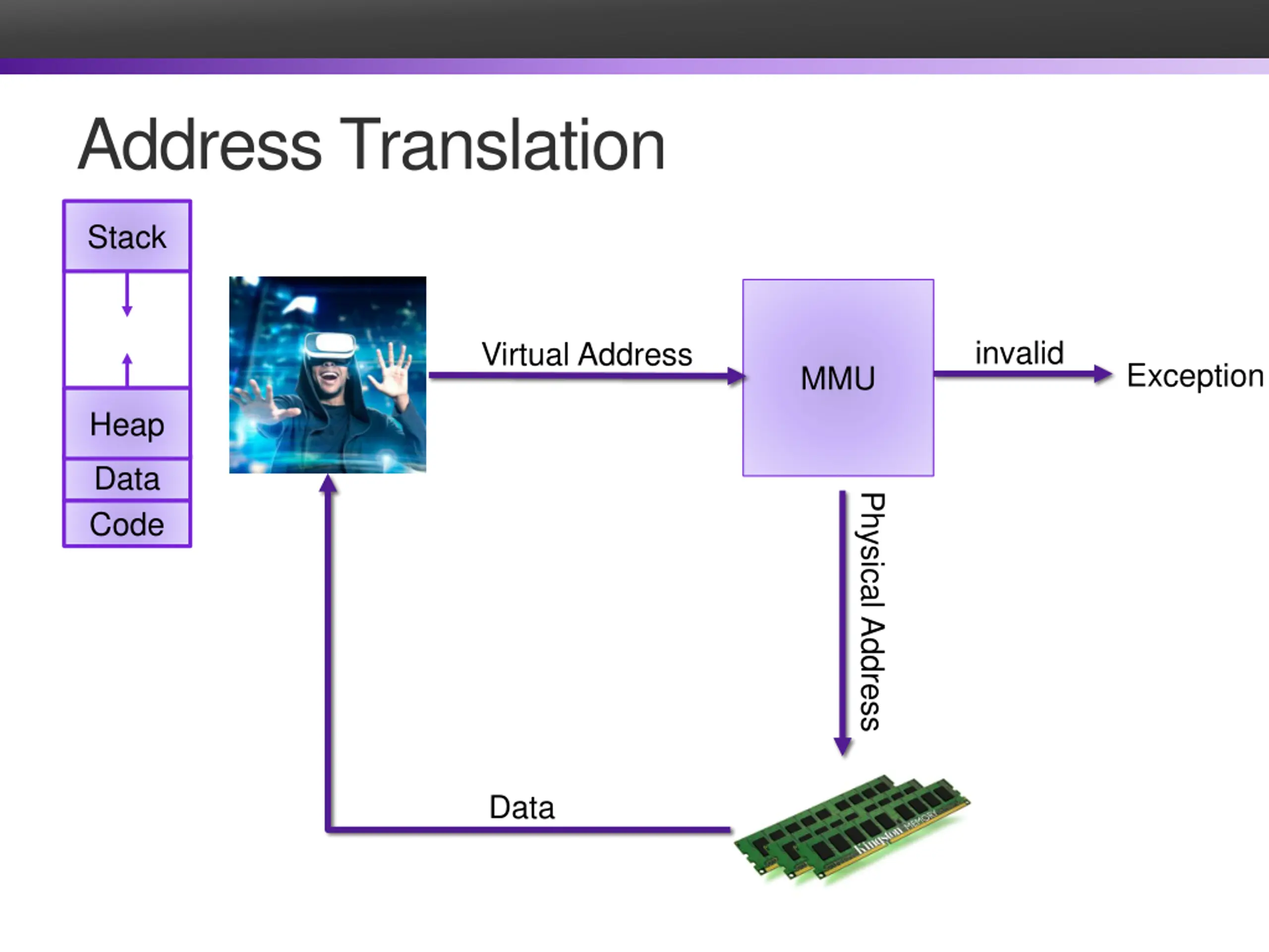 Address Translation Stack invalid Virtual Address Exception MMU Heap Data Physical Address Code Data