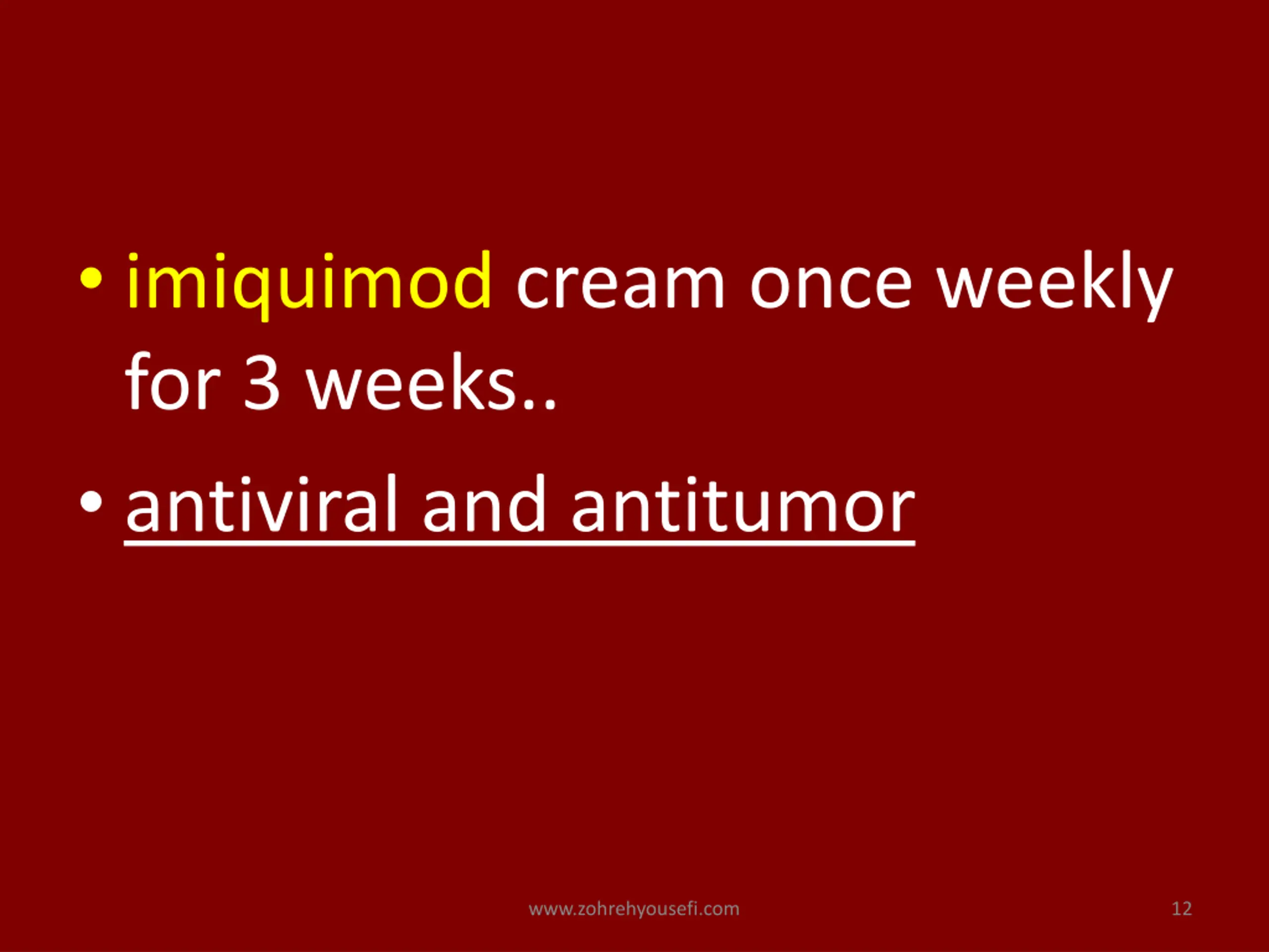 imiquimod cream once weekly for 3 weeks.. antiviral and antitumor www.zohrehyousefi.com 12